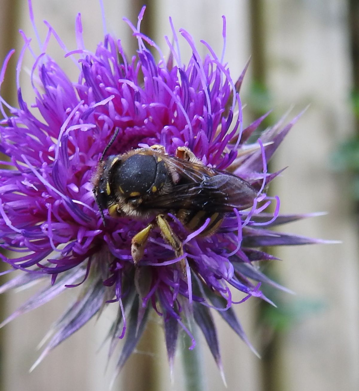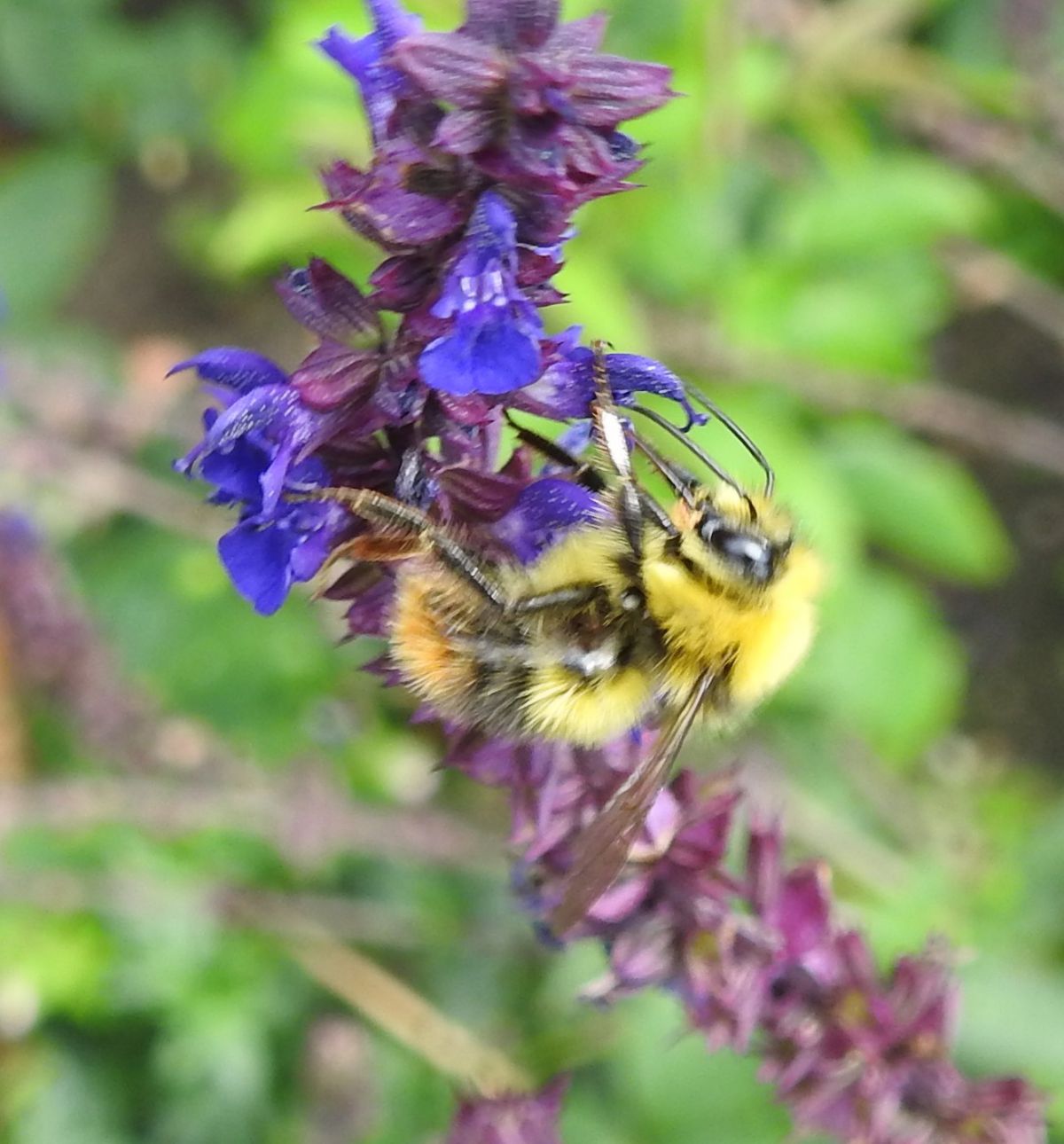 Dit insect ook in juni gefotografeerd. Ik dacht eerst een zweefvlieg, maar hij heeft teveel haar denk ik, maar wat dan?
