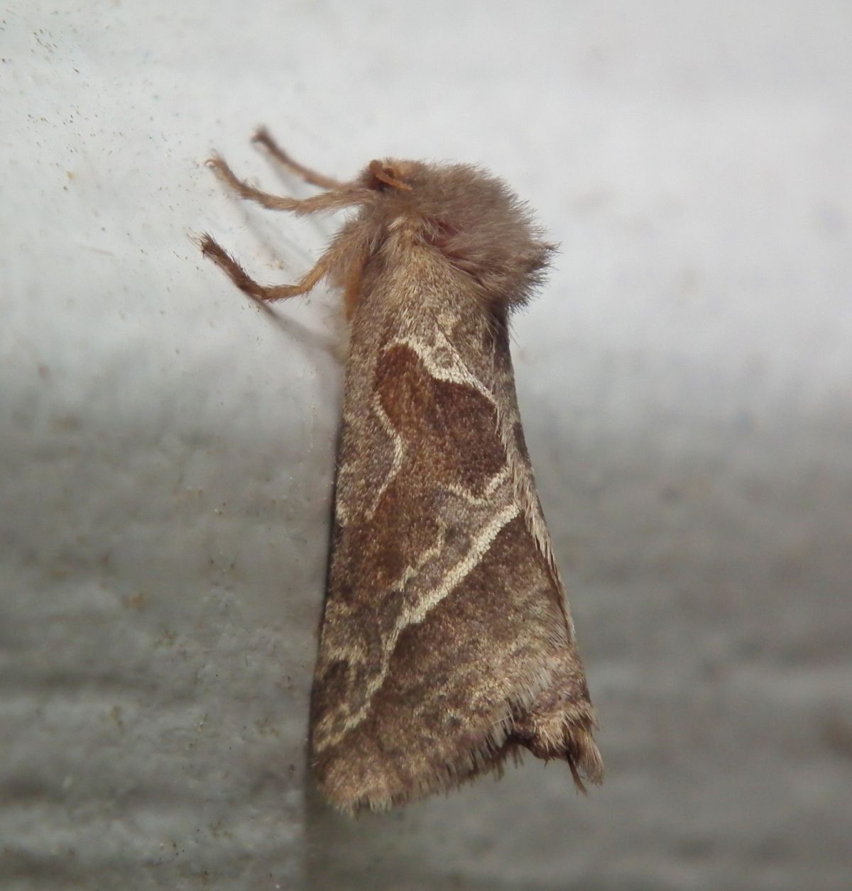Dit motje zat op de dorpel bij de voordeur en ik dacht in eerste instantie aan een Gamma-uiltje. Ca 2- tot 3 cm groot.Ik mis echter het karakteristieke "gammateken".Naspeuringen op het internet bleven tot nog toe zonder resultaat.Mag ik een beroep doen op jullie inzicht.?...
