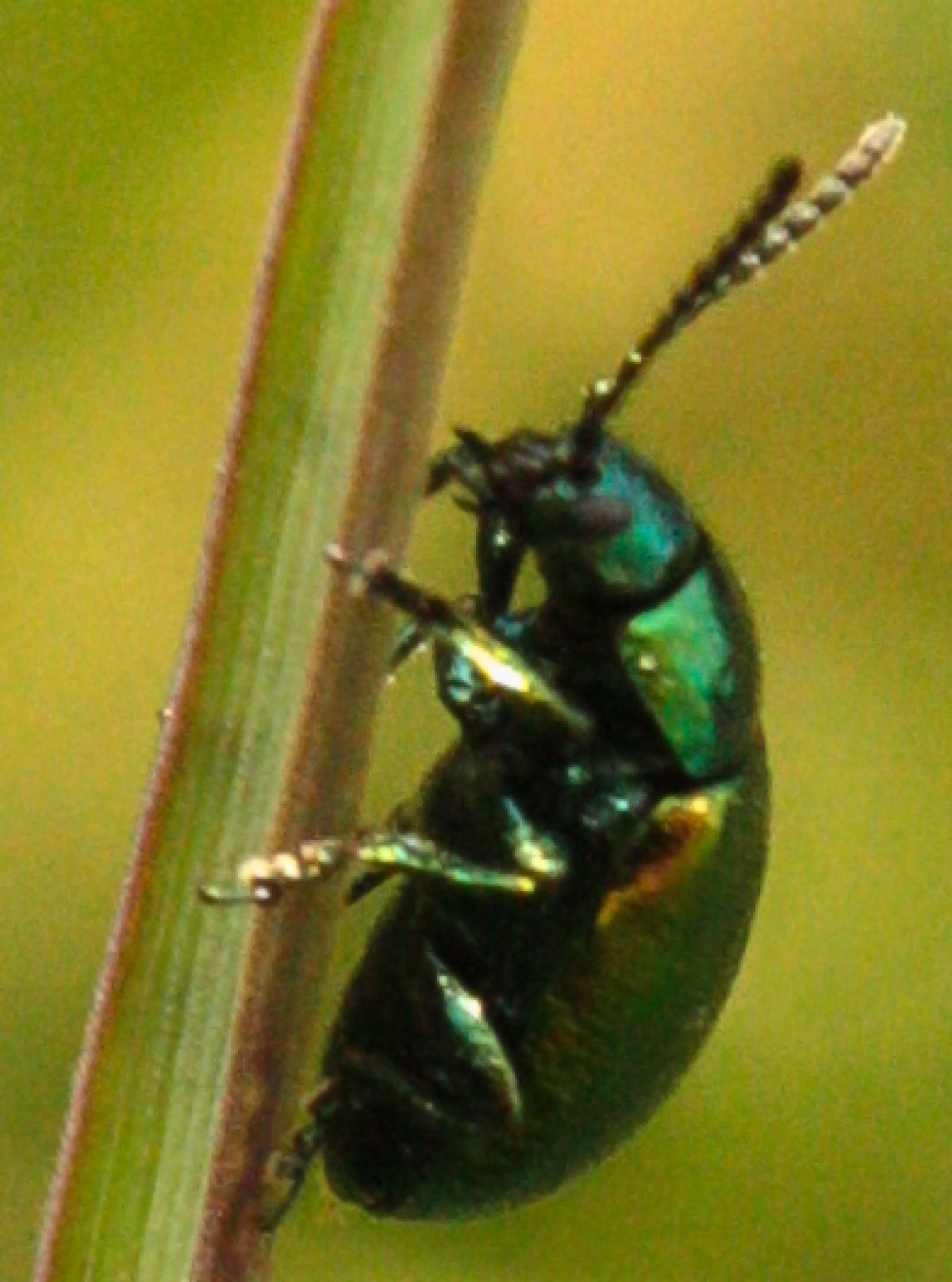 Welk blashaantje is dit? Laagveen/polder te Utrecht, juli, hier op een grassoort maar sterk vergelijkbare kevertjes veel op de wilg gezien