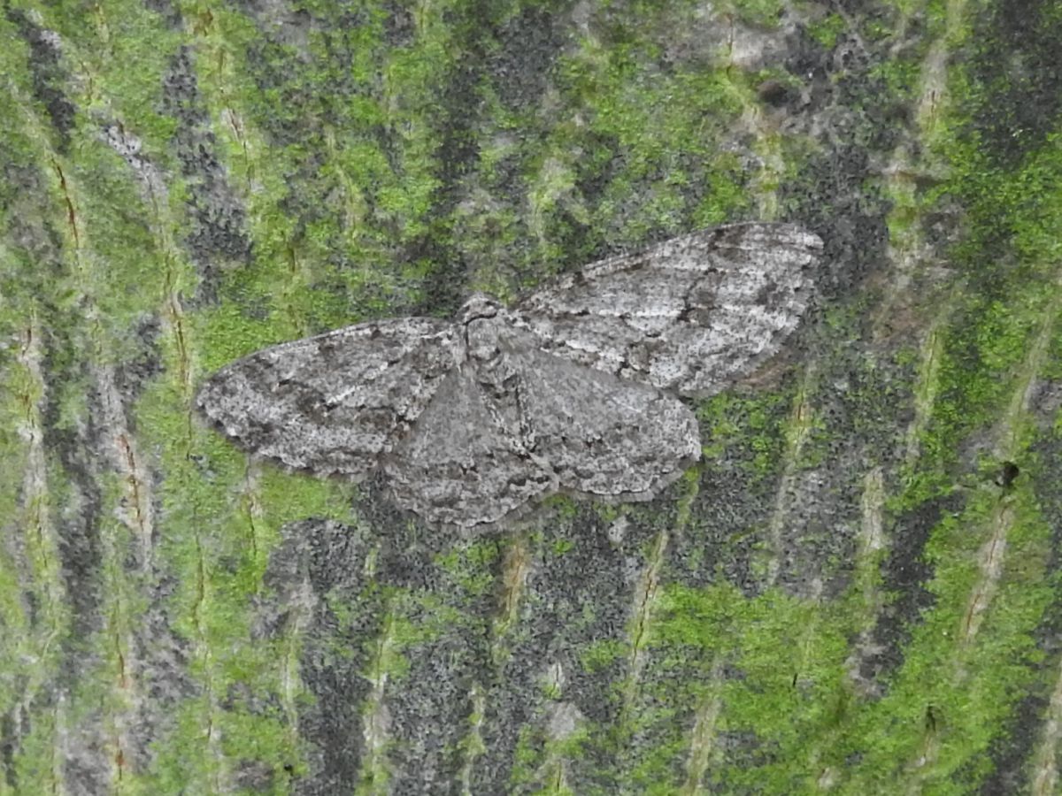 Deze spanner zat in juni tegen een boom bij een bosrijk gebied en een vlindertuin in Waalre.