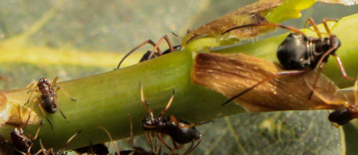 Grote moeite om deze bladluis op naam te brengen. In associatie met de wegmier gezien op vegetatie +/- 1m hoog,struikachtige plant (welke weet ik niet), juli, stadsomgeving, Utrecht