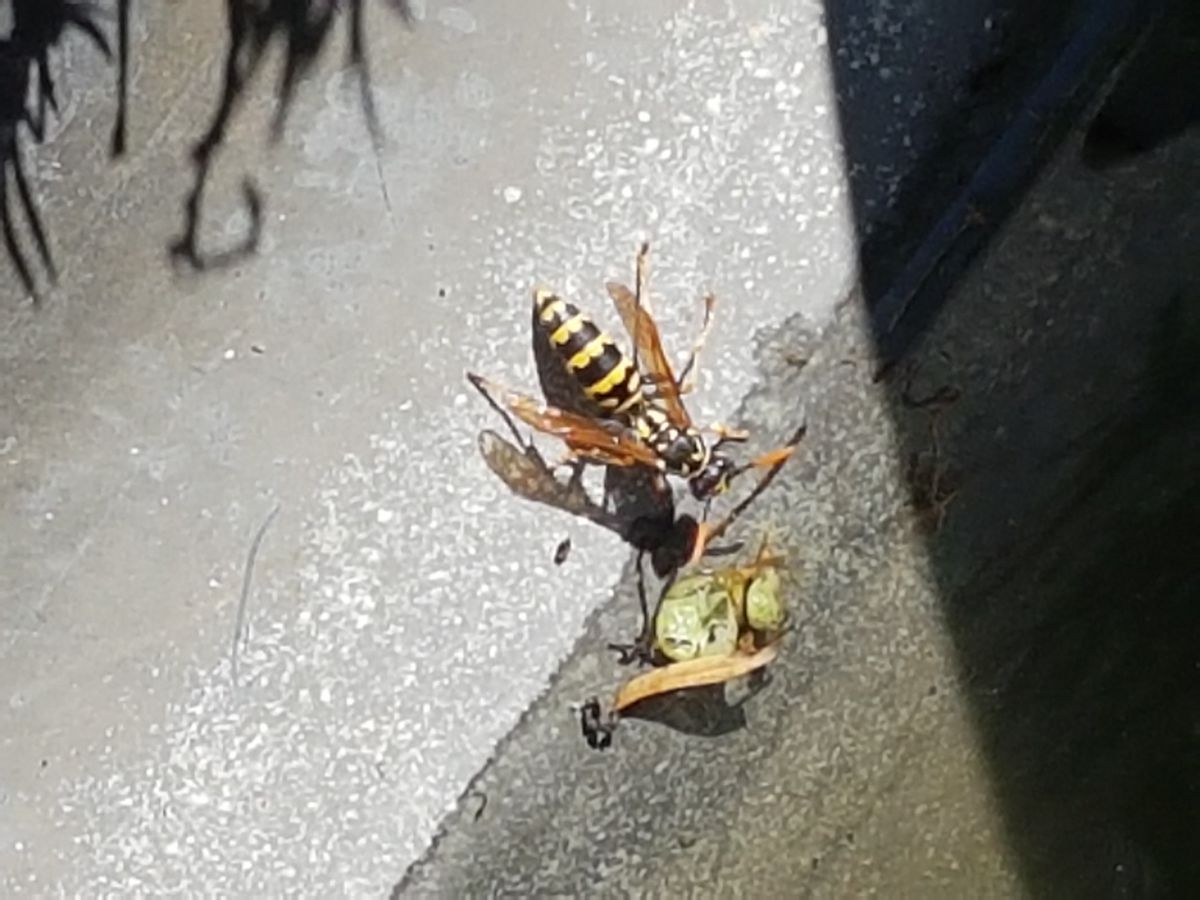 Elke paar minuten komt deze wesp uit de vijver drinken. Het is geen gewone wesp, lijkt op een muurwerk. Maar die zijn solitair en parasitair. Dus waarom zou die dan constant af en aan vliegen voor water? Iemand een idee?