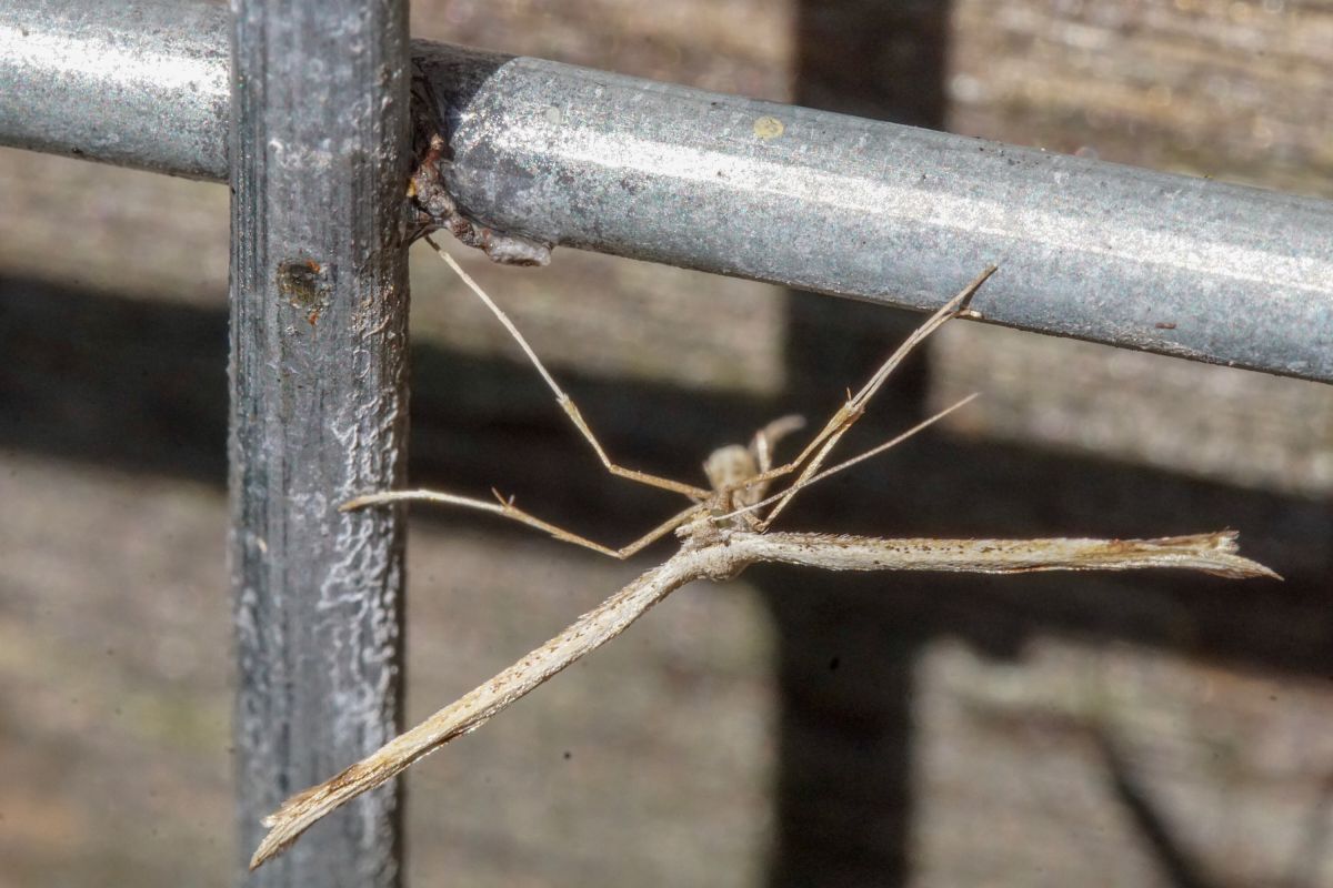 Wat is dit voor insect? Heel dun en houtachtig.Kwam bij het sproeien uit de klimhortensia in de tuin.