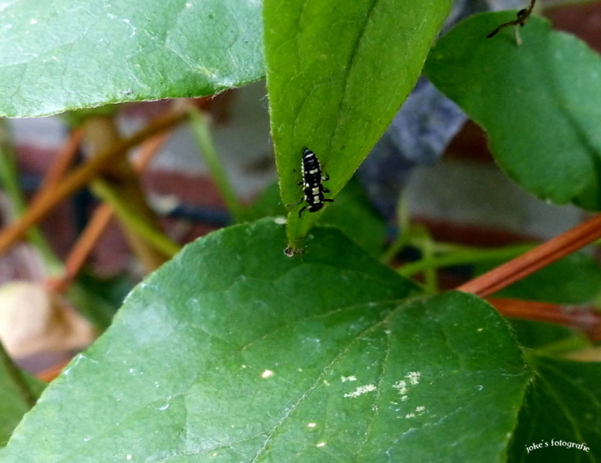 Deze voor mij onbekende tor of kever trof ik aan op 4 juni aan het einde van een warme dag in mijn voortuin in Bad Bentheim, smullend van een bloem. Hij was prachtig geel op de vleugeltjes met zwarte lijnen begrensd en met zwarte, symmetrische stippen. Onder de vleugeltjes zaten lange witte haren. Z...