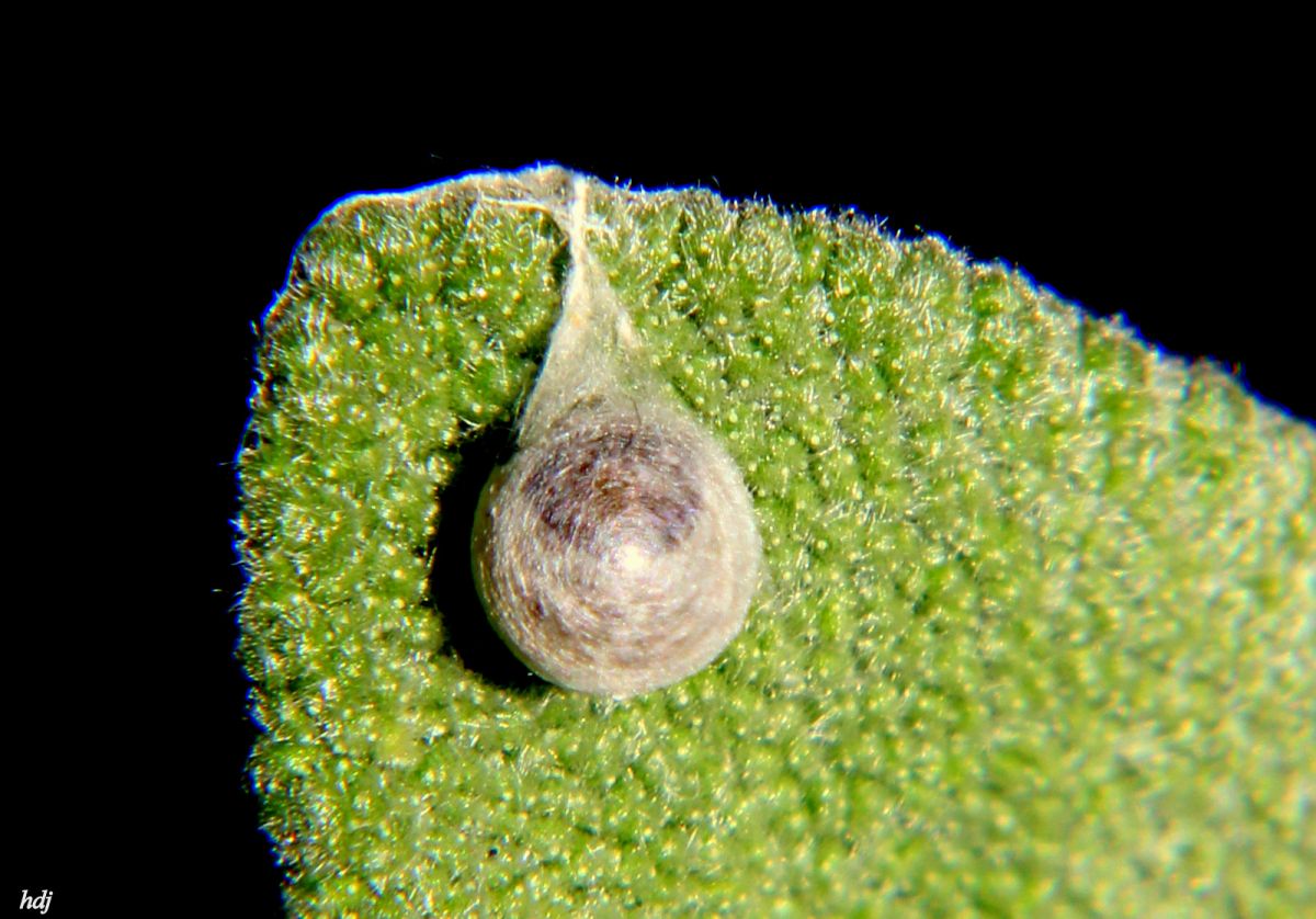 Dit piepkleine bolletje hing aan een blad van de Salie in mijn kruidentuintje.