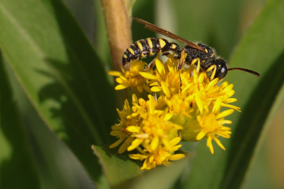 Omdat hij wat kleuren heeft die lijken op een goudwesp, heb ik een foto bijgevoegd waarop zijn lijfje goed zichtbaar is.