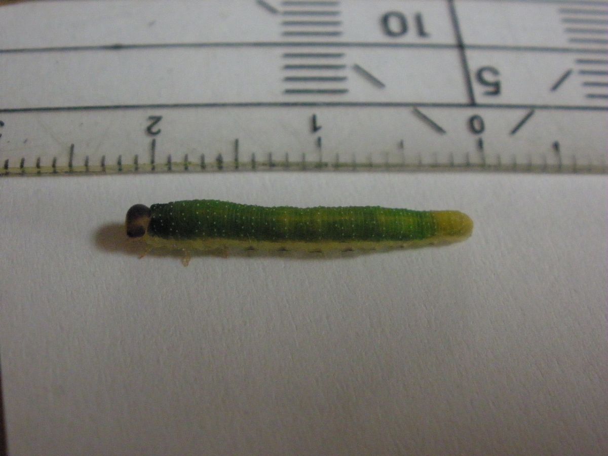 Vandaag gevonden, op een rozenstruik, in een woonwijk, in Lelystad. Waarschijnlijk niet van een vlinder omdat het meer dan vier buikpoten heeft. Zie foto's.