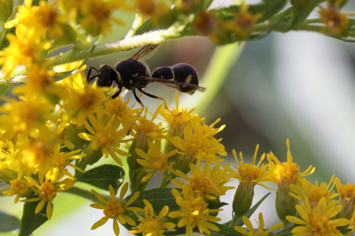 Deze zat op een verwilderd wildbloemenperkje op een ...