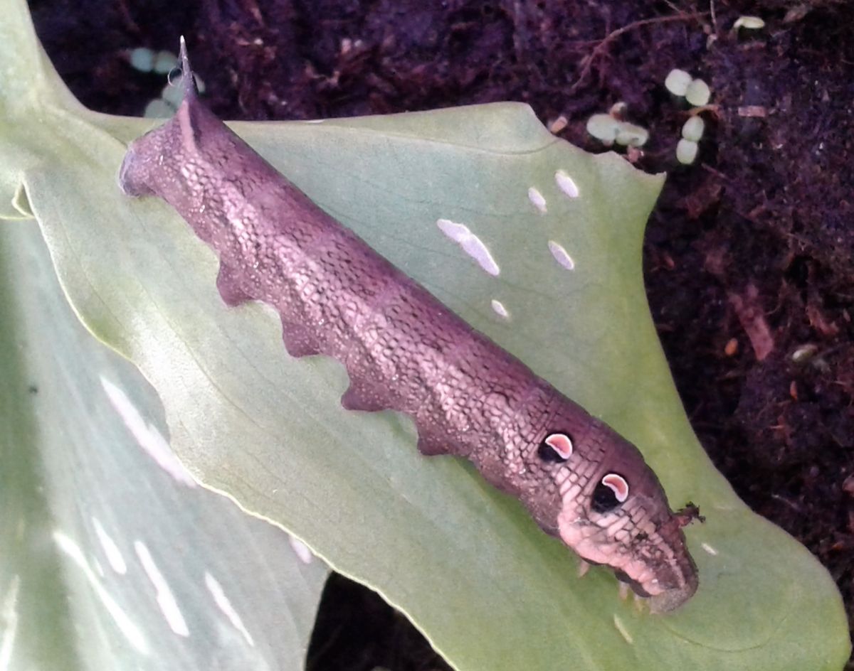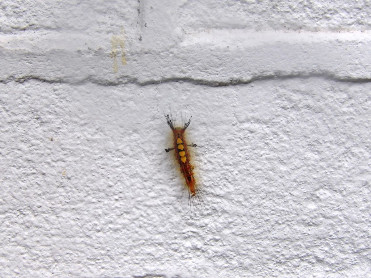 Een vriendin van mij wilde de Gft bak nog even vullen voor het buiten zetten en vond toen 2 rupsen - een duimdikke bijna 7 cm. land en een dunne van ongeveer 31/2 cm.