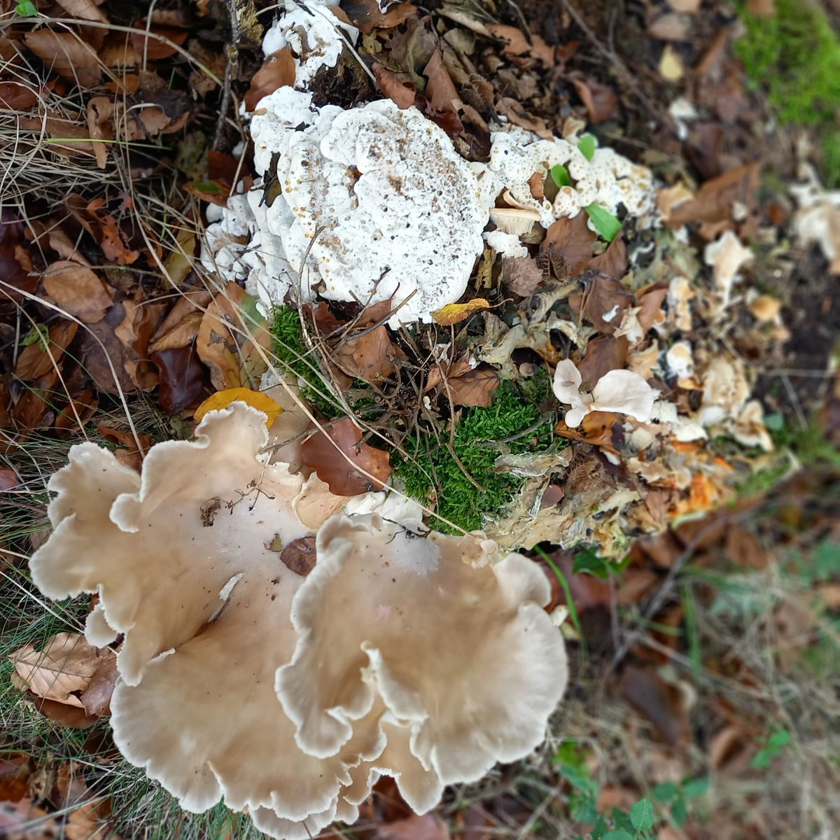 in Plantloon langs een weide, op een afgezaagde beuk zag ik deze zwammen en schimmel waar ook weer jonge zwammen uit groeiden.