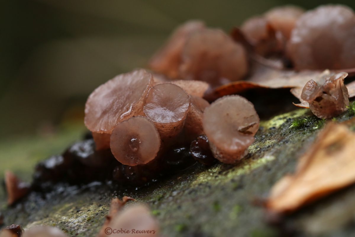 Deze mini paddenstoelen zaten op een boom (sorry geen idee wat voor boom)weet iemand welke soort paddenstoelen dit zijn.