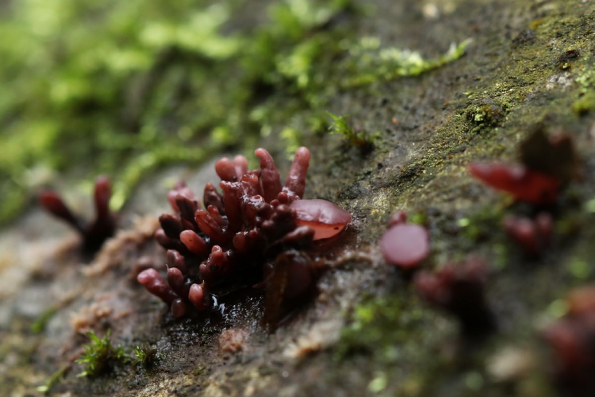 Deze mini paddenstoelen zaten op dezelfde boom (sorry geen idee wat voor boom)weet iemand welke soort paddenstoelen dit zijn. Het lijken kleine bruin/roze vingertjes.Gevonden in het Schokkerbos.