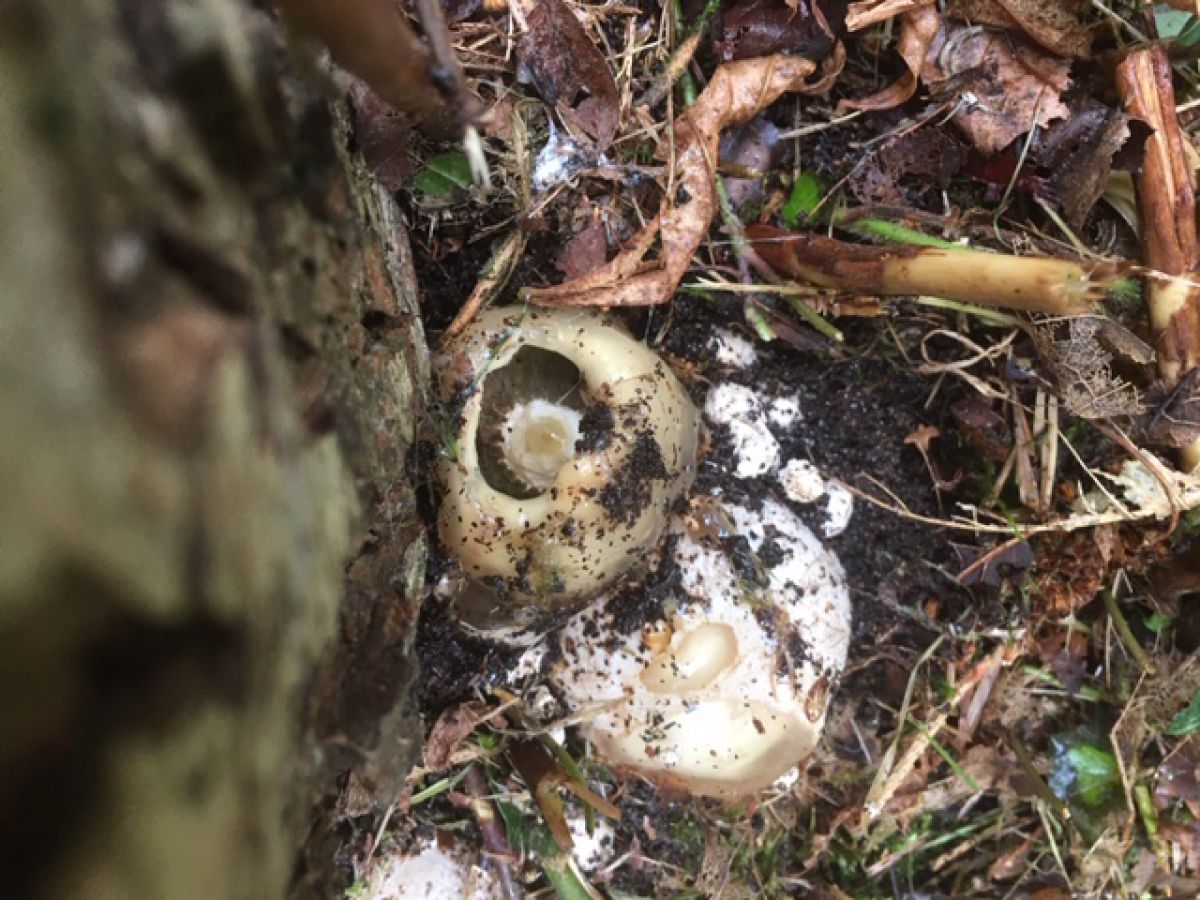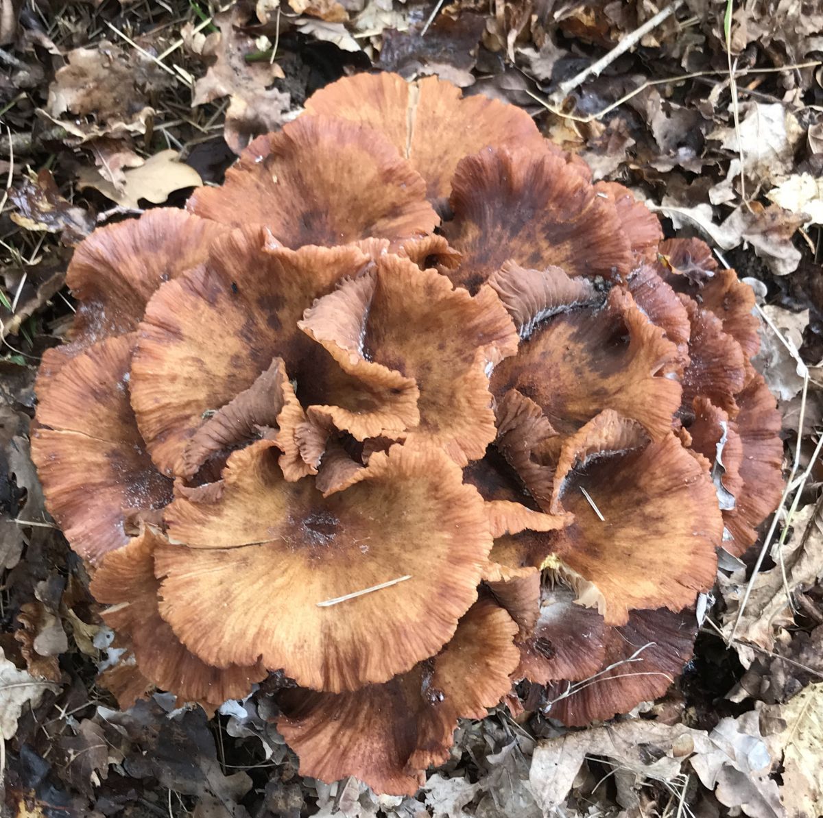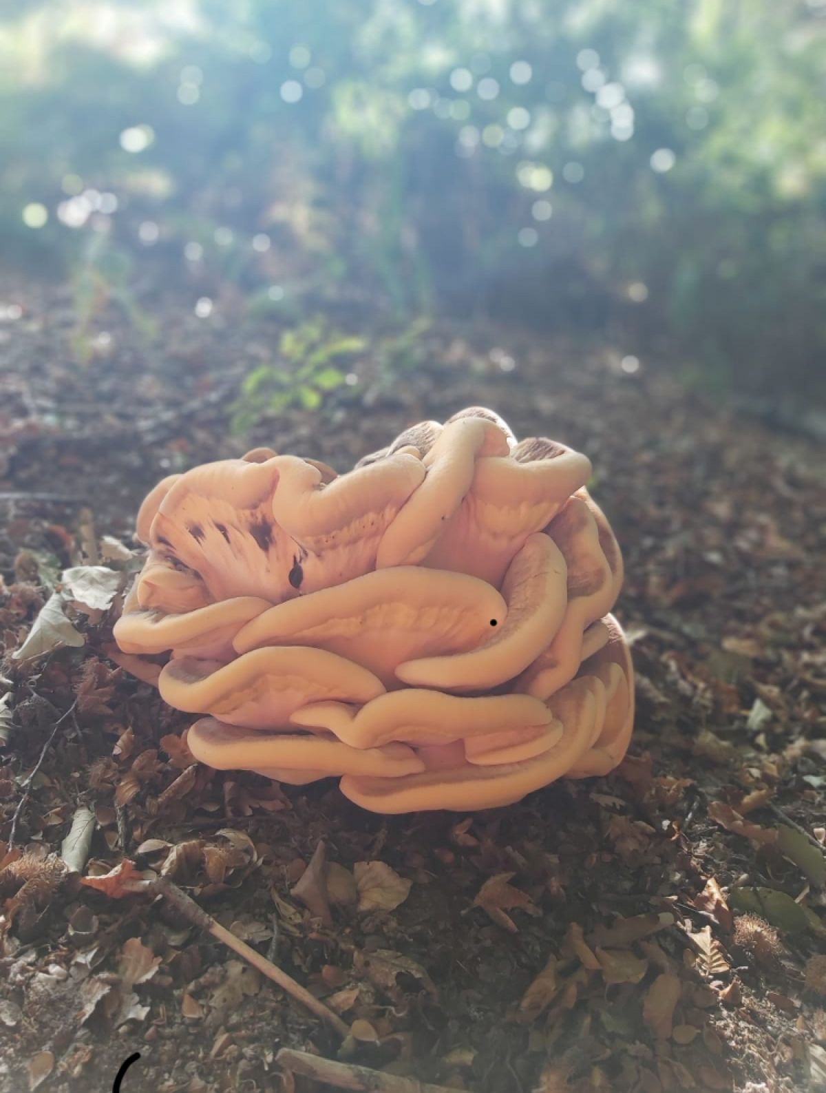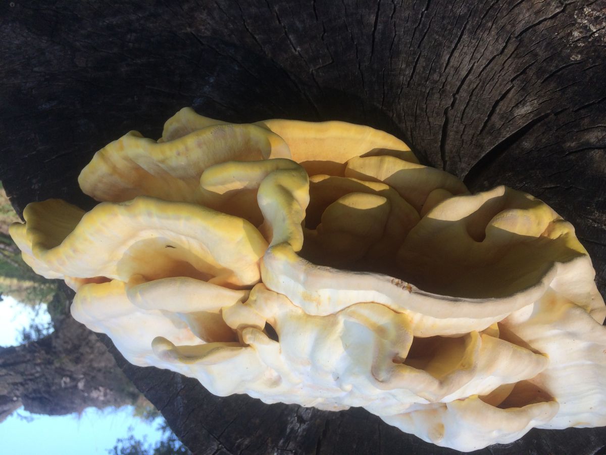 Deze staan onder aan een afgezaagd stammetje, wat zou het zijn? Er lijkt een laag gelei over te liggen en sommigen zijn open.