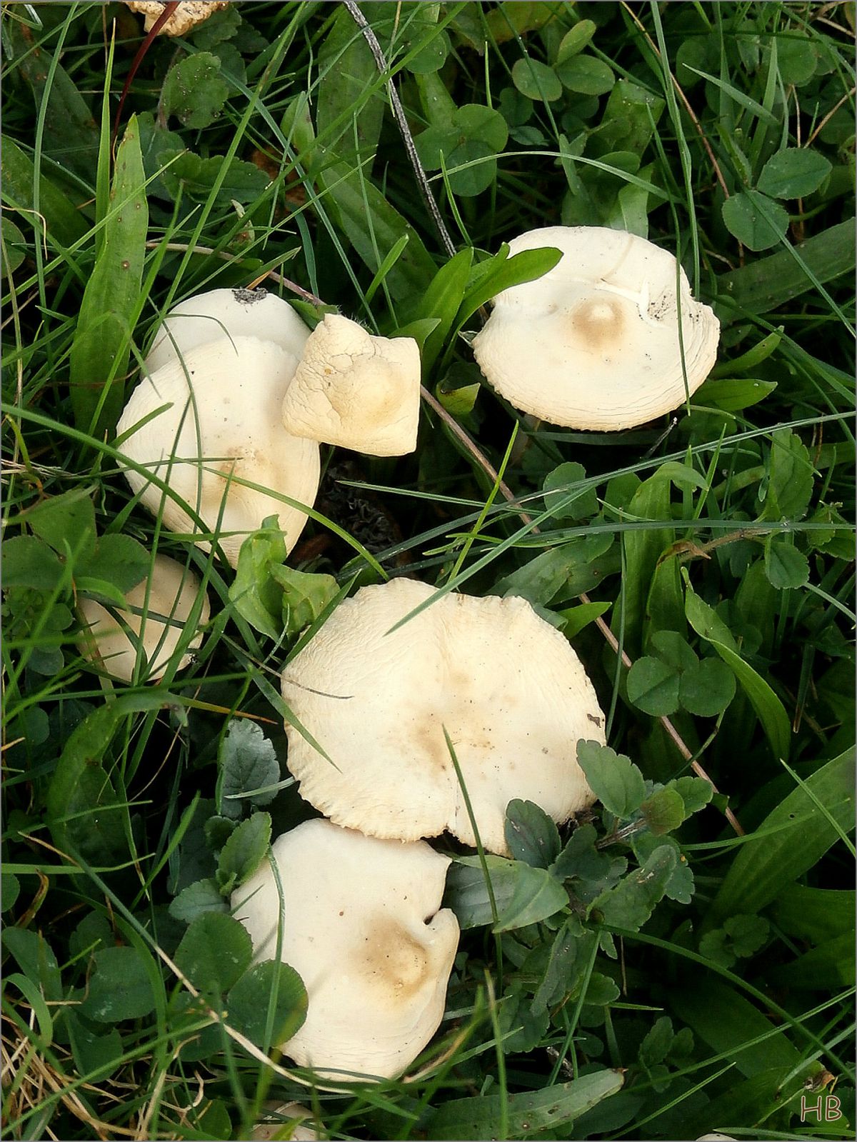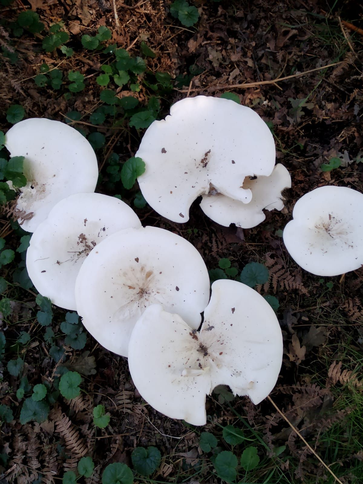 In het gras bij de Natuurbrug Crailoo vond ik deze witte zwammetjes, vlakbij de plek waar ik een Wasplaatje vond.Mijn vraag is of deze witte ook wasplaten kunnen zijn, bv. de grauwe ?