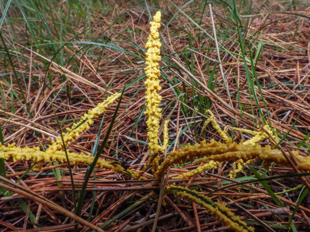 Op 20 oktober heb ik in het bos rond de vuurtoren van Ameland deze schimmel rond grassprieten gezien. Wat is het?