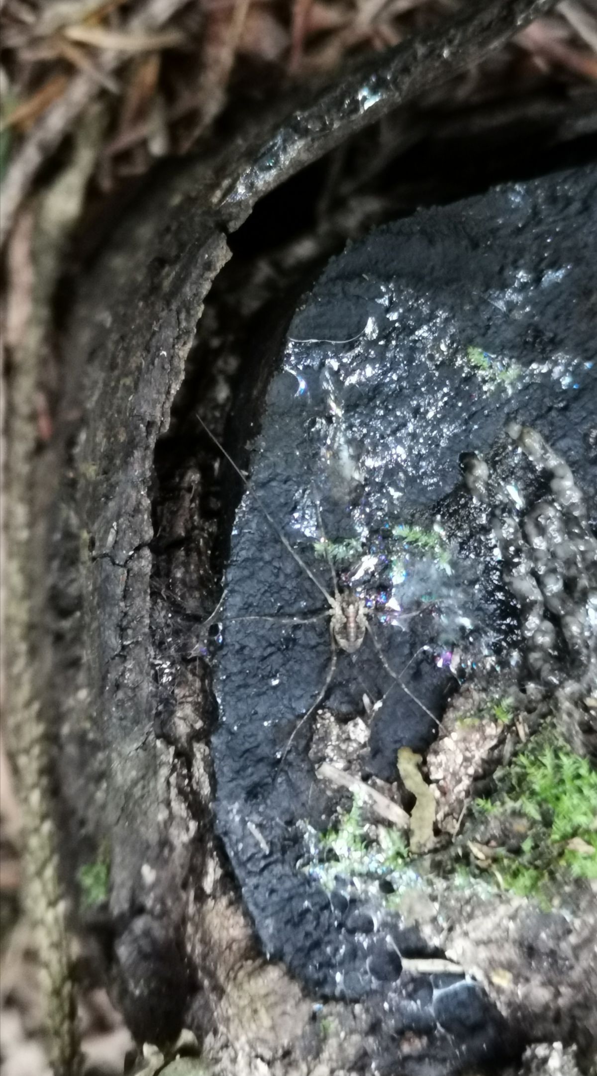 Boven op boomstronk en spin hoe heet deze schimmel en de spin