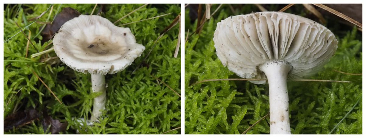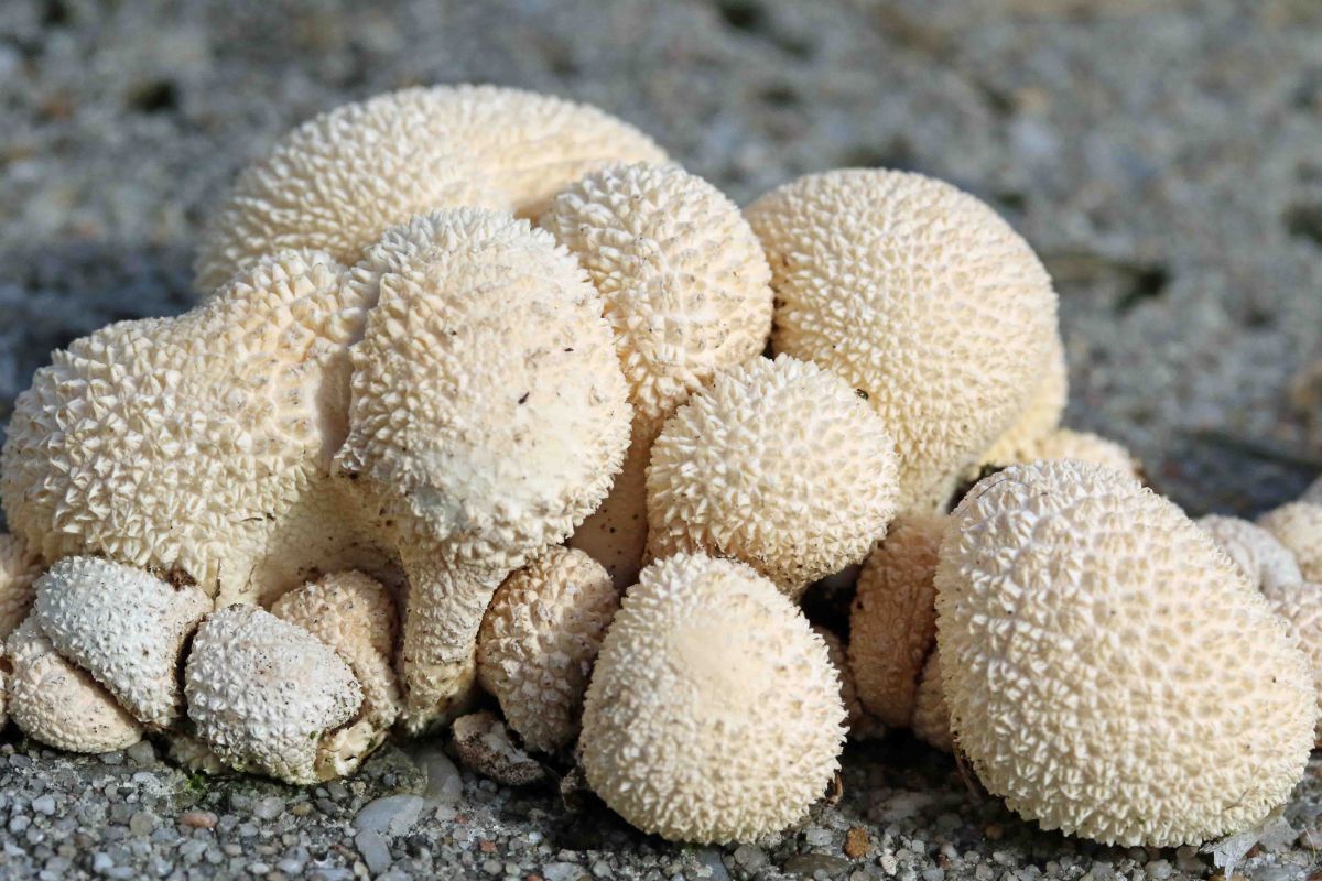 Bijgaande zwammetjes groeien tussen de tuintegels nabij het gras. Ze zijn vandaag weer aardig gegroeid en nu zo'n 1 à1,5 cm groot. Ik heb gezocht en denk een stuifzwam , maar welke? De kleine, de parel ? Of...Foto is een macro-opname.