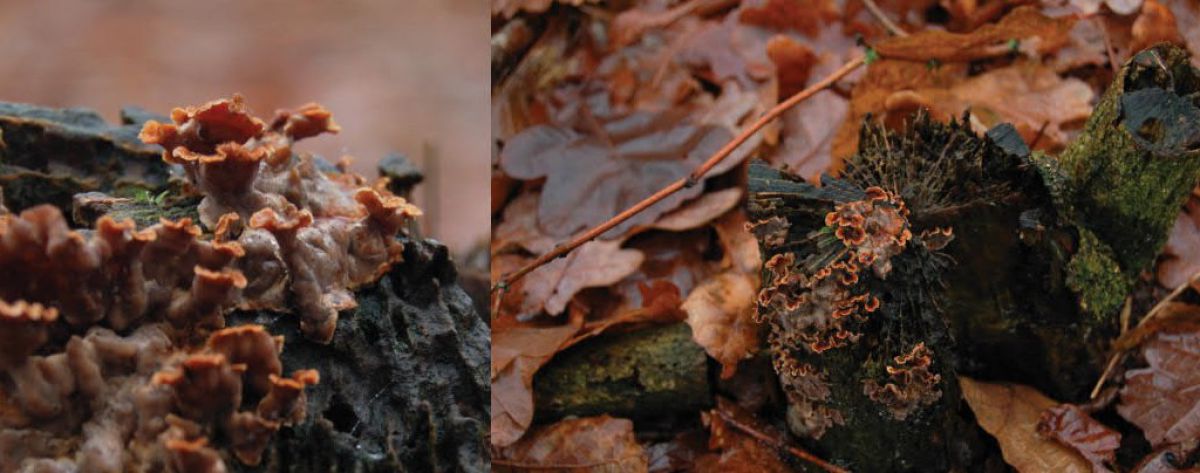 Hier lijkt of de een de andere opslokt. Welke zwam is dit?