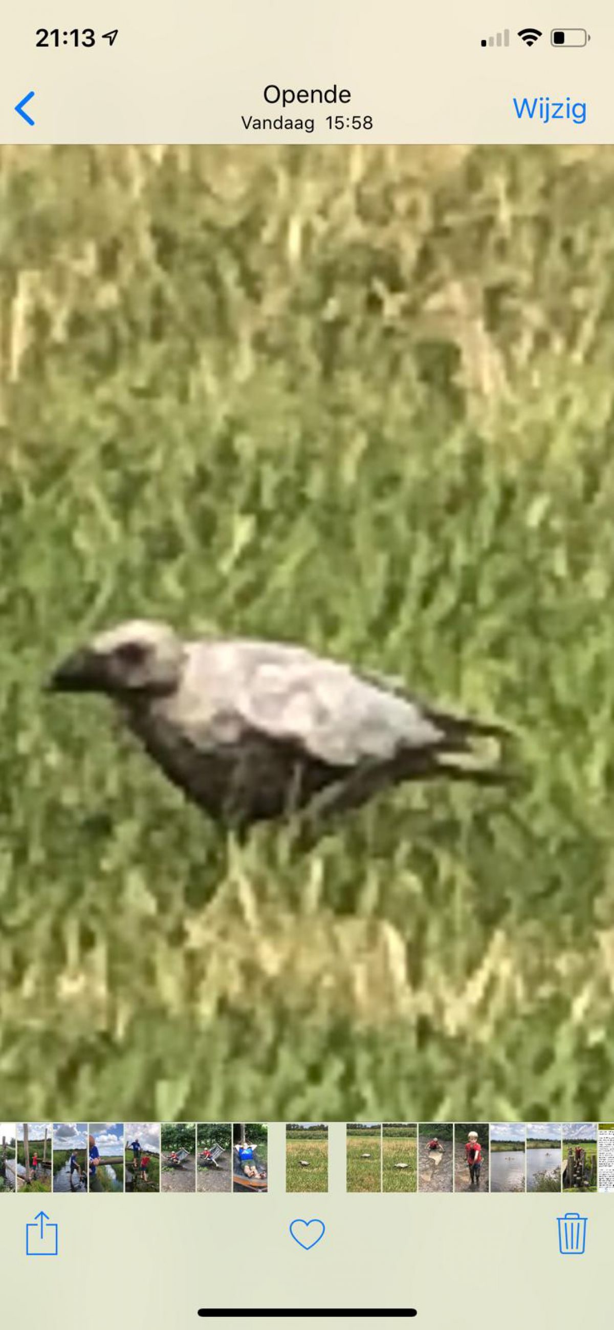Welke vogel is dit? Gezien in weiland in Opende, in het westerkwartier, provincie Groningen. Grootte van een kauw, maar dus licht gekleurd.
