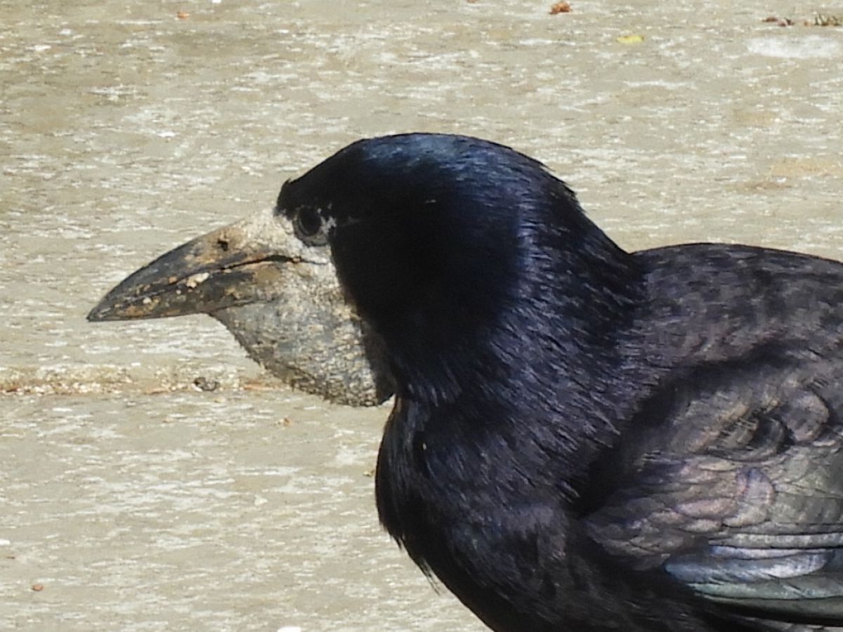 Een Roek met een vreemd aanhangsel aan de onderste snavel.Is dit normaal?