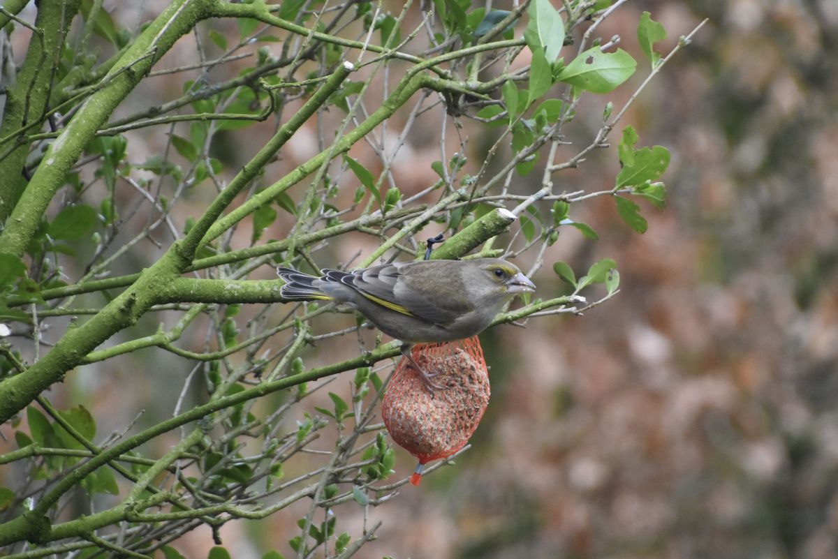 Vanmiddag gefotografeerd in Zuidwolde, bij de Takkenhoogte, logeer daar in een natuurhuisje en heb aan de haag wat vetbolletjes opgehangen.Ik twijfel een beetje omdat hij weinig geel is en erg dikke snavel heeft!bedankt voor jullie meedenken,Jeanet Koets