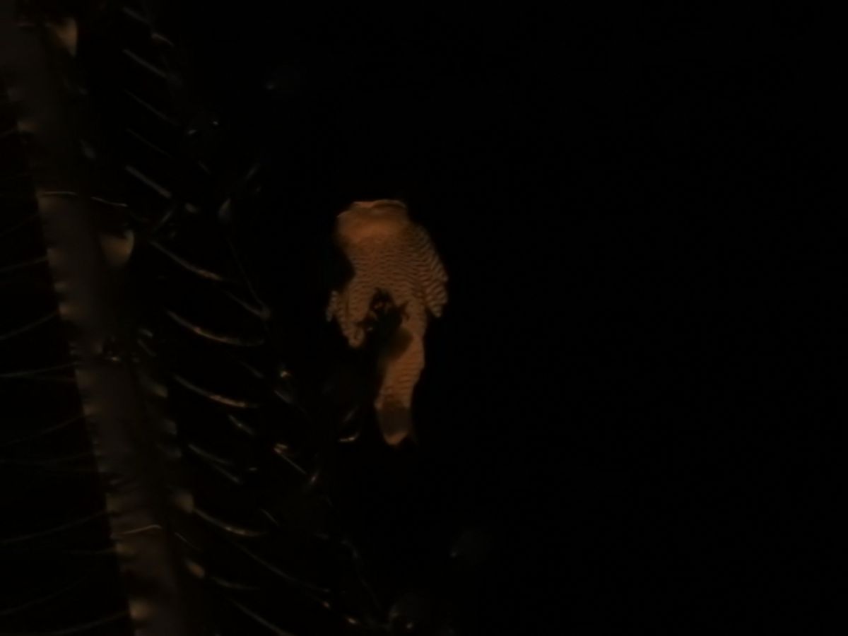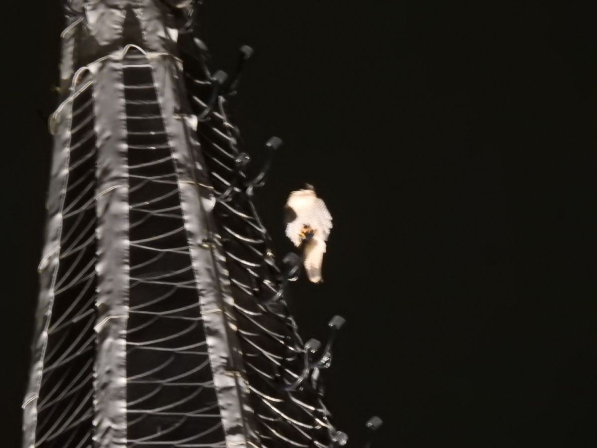 Op zo,n 60 mtr hoogte in het donker op de torenspits zag ik deze roofvogel en dacht dat het een slechtvalk was. Even later kwam hij/zij terug met een prooi, ik dacht een duif. Kwaliteit foto's niet best maar meer kon ik er niet van maken. Is dit een slechtvalk? NoordFriesland