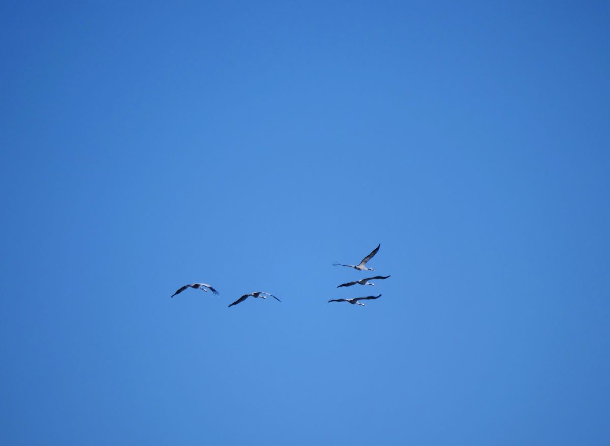 04-03-2018 Overvliegend richting noord-oost, Zwolle zuid, schellerparkZijn dit kraanvogels?