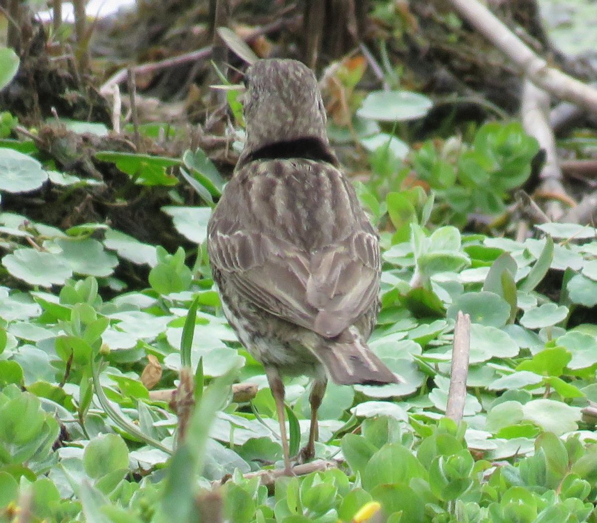 Klein vogeltje langs het grote ven op de Strabrechtse Heide. Datum: 16-07. Helaas liet het zich niet van voren fotograferen. De zwarte streep in de nek is echter wel heel opvallend.