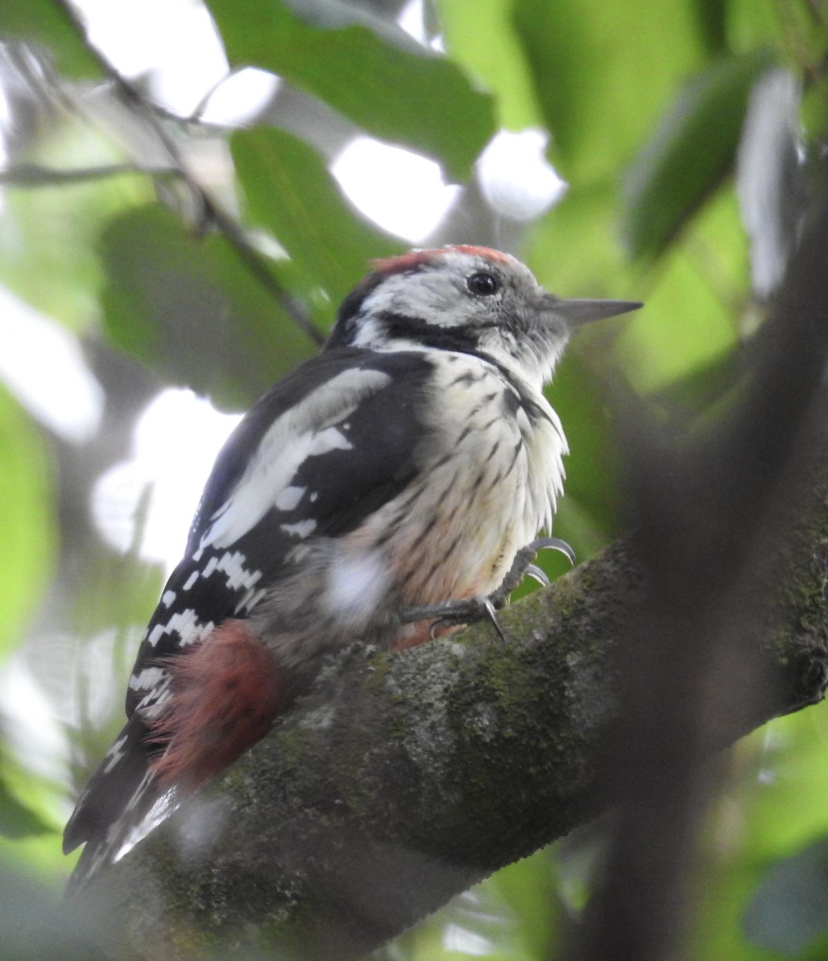 Zou dit een middelste bonte specht kunnen zijn? Ik baseer dit op de zijflank kleur.Was in een bosrijke omgeving in Duitsland.Alvast bedankt voor een reactie.