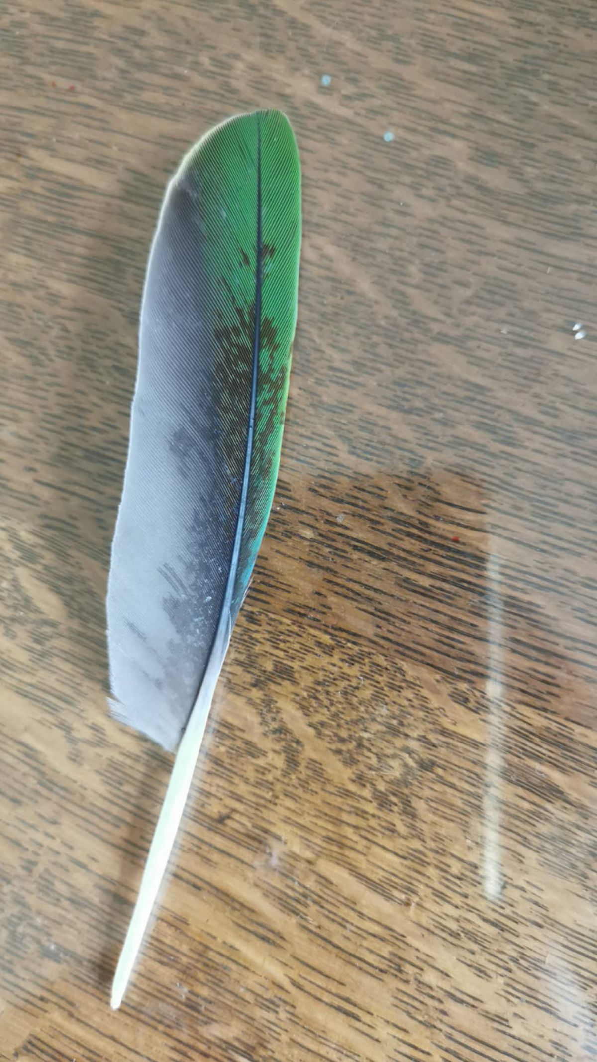 Van welke parkiet is deze veer, gevonden op straat in Zoetermeer, lengte 11 cm.