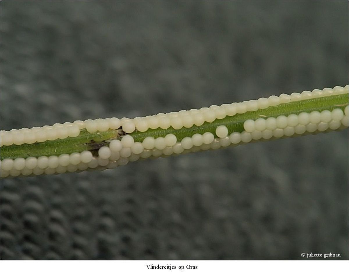Met zoeken zul je zeker vergelijkbare configuraties tegenkomen, onder andere - even uit m'n hoofd - bij de Huismoeder, maar dat betekent dan natuurlijk nog niet dat het die ook moet zijn. Er zijn er ongetwijfeld (veel) meer met dergelijke eitjes en een vergelijkbare manier van afzetten. Ik doe geen vlinders, maar kan me goed voorstellen dat je, voor zover überhaupt mogelijk, (bijna) microscopische plaatjes van de microsculptuur van de eitjes moet hebben. Voor zover er dan literatuur over bestaat die gedetailleerd genoeg is.