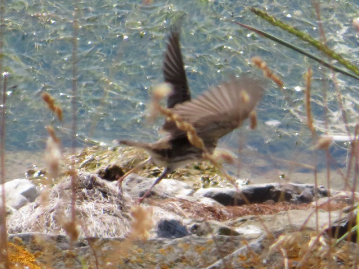 Ik was 5-7 in Zeeland bij plan Tureluur en daar zag ik deze pieper in actie. Hij/zij dook als ‘t ware naar de steil lager liggende oeverrand. Thuis heb ik piepers bekeken, maar waterpieper noch oeverpieper komen in de zomer in Nederland voor. In de wijde omtrek was geen boom en graspiepers zitten niet zo aan waterkant, dacht ik.