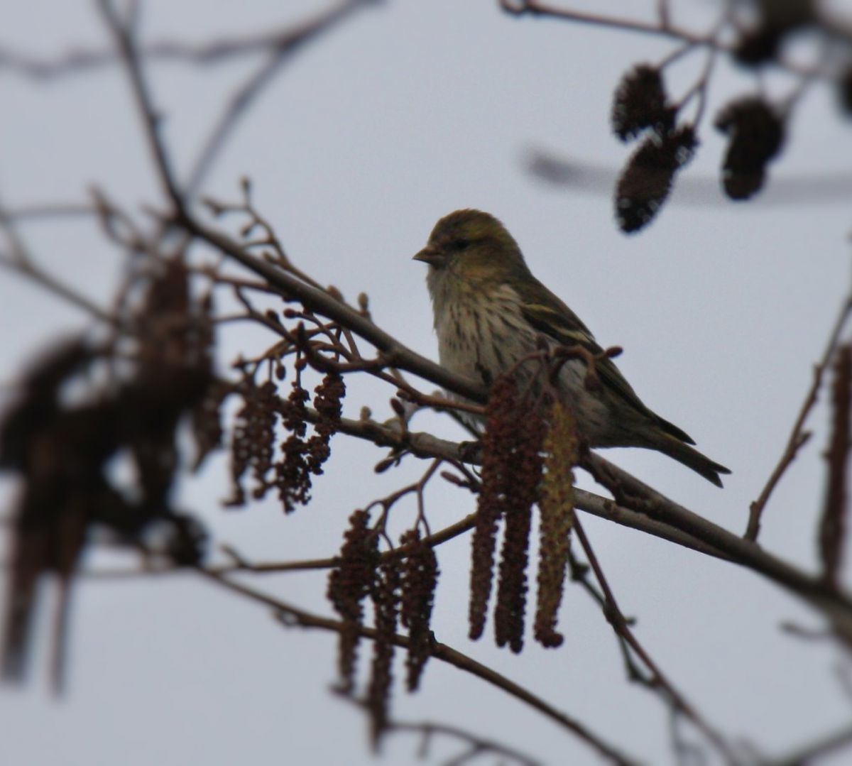 Stuur een foto mee van een vrouwtje Sijs, gezien in de winter. Heb er een gekozen die ook niet bij stralend weer is gemaakt.