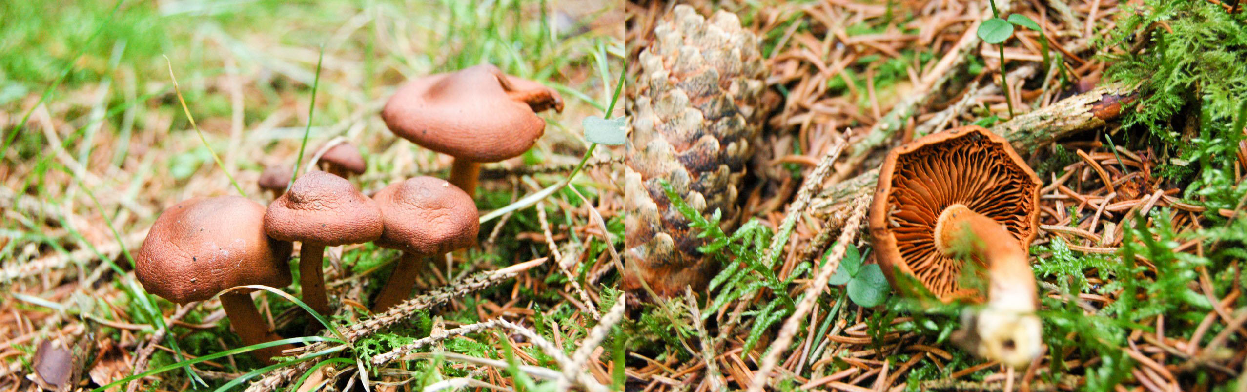 Bijvoorbeeld aan de hand van deze paddenstoel. Dennenbos, hoed en steel bruin. En zijn de lamellen nu wel of niet aangehecht?