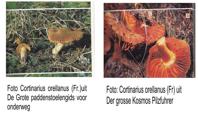 Dank Joost, blijft idd moeilijk van een foto, en zeker als je twee verschillende paddenstoelen gidsen gebruikt. De Grote paddenstoelengids voor onderweg (NL) en de duitse versie Der grosse Kosmos Pilzfuhrer. Zie foto's. Voor mijn excemplaar neig ik (net als Ingrid vermelde) richting cortinarius cinnamomeus (orangeblattiger Zimt-Hautkopf) in Duitsland vrij algemeen volgens gevonden informatie op internet. Blijft heel moeilijk!!