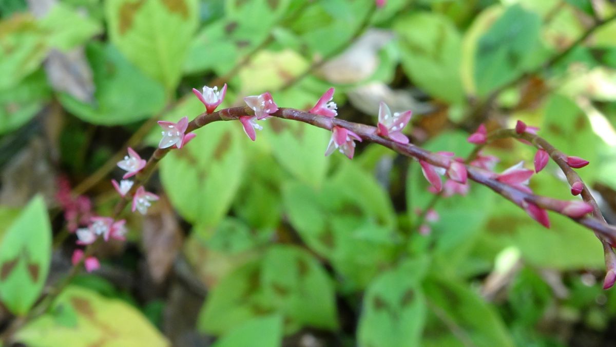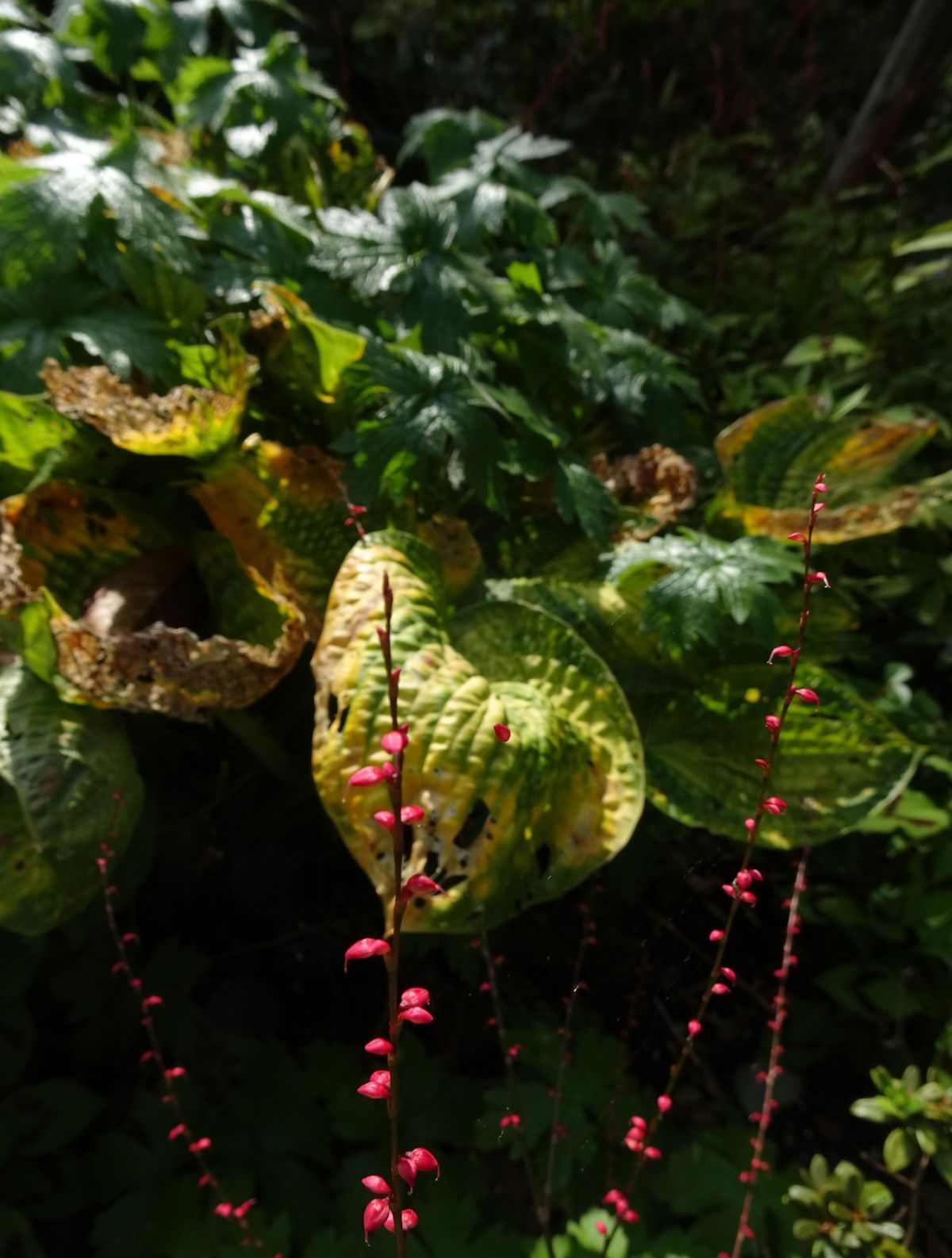 Heb niet ge-checked wat betreft dat blad maar de tak met blad duiken samen op op meerdere plaatsen in die tuin, ... dus ... Ook een medewerker gevraagd maar die heeft zich vergist. met rood perzikkruid. Zal nog eens verder zoeken gaan.