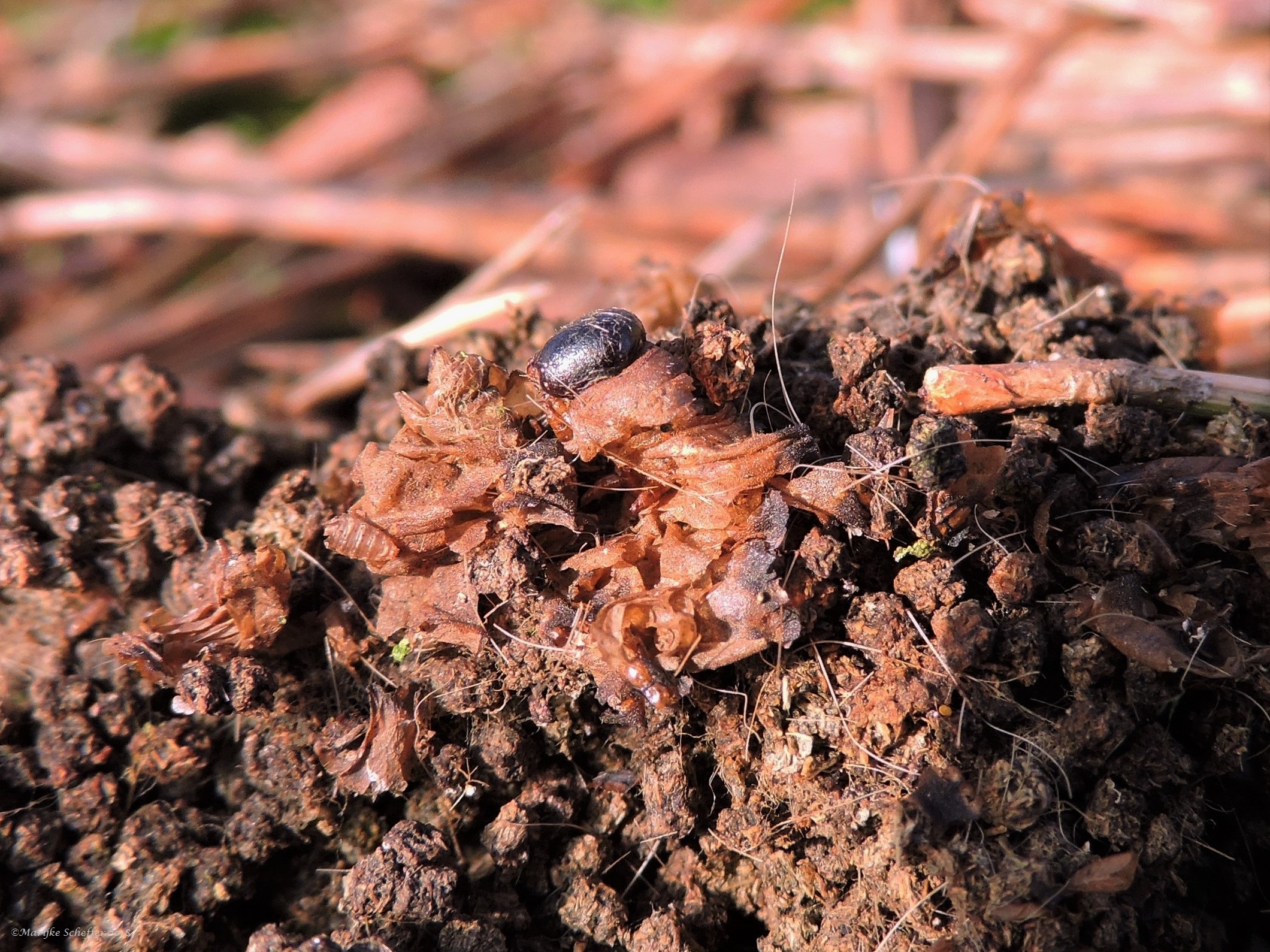 @ Jeanette de cocons zitten "vast" ze komen uit de grond de andere foto ook deze plekken zitten aan elkaar (en vond ze vrij groot te zien aan dennennaalden).