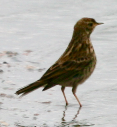 Lijkt mij een graspieper, omdat de strepen ook in de flanken nog dik en duidelijk zijn, dit itt bij de boompieper. Veldleeuwerik heeft alleen strepen op de borst en een witte buik.