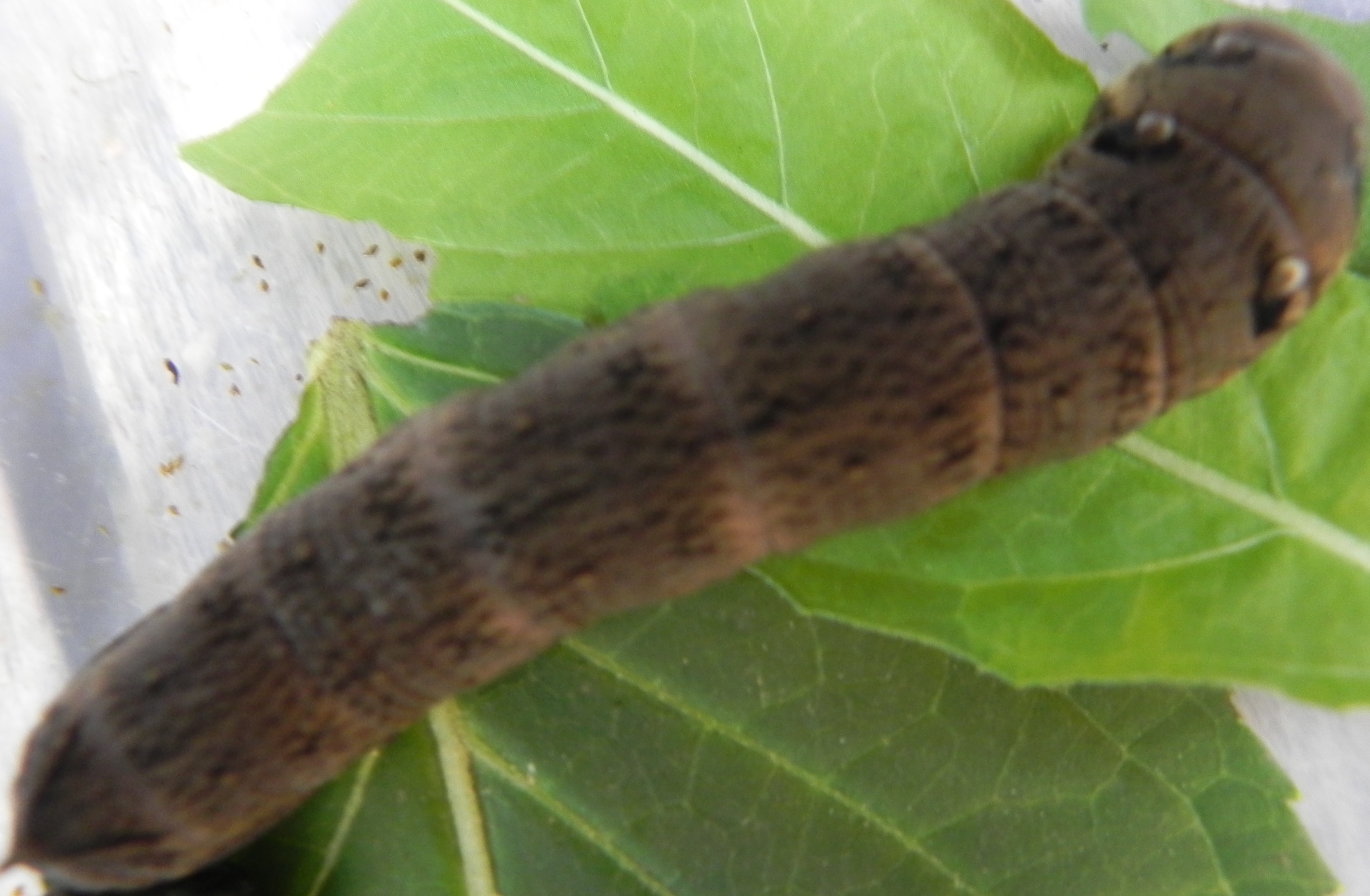Vermoedelijk is het de rups van het Groot avondrood (Deilephila elpenor).
