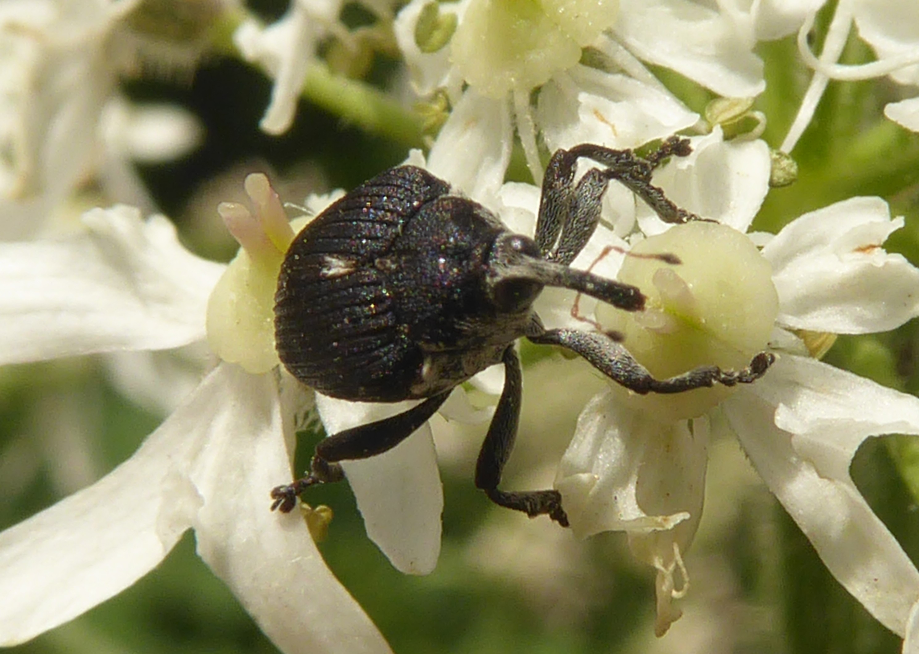 Vanmiddag aangetroffen op berenklauw. Op pad langs plas met veel riet, brandnetels, bramen en een berenklauw. Ik kwam al zoekend terecht bij de gehoornde schermbloemsnuittor (Liparus coronatus), maar ik heb niet het gevoel dat dat juist is.