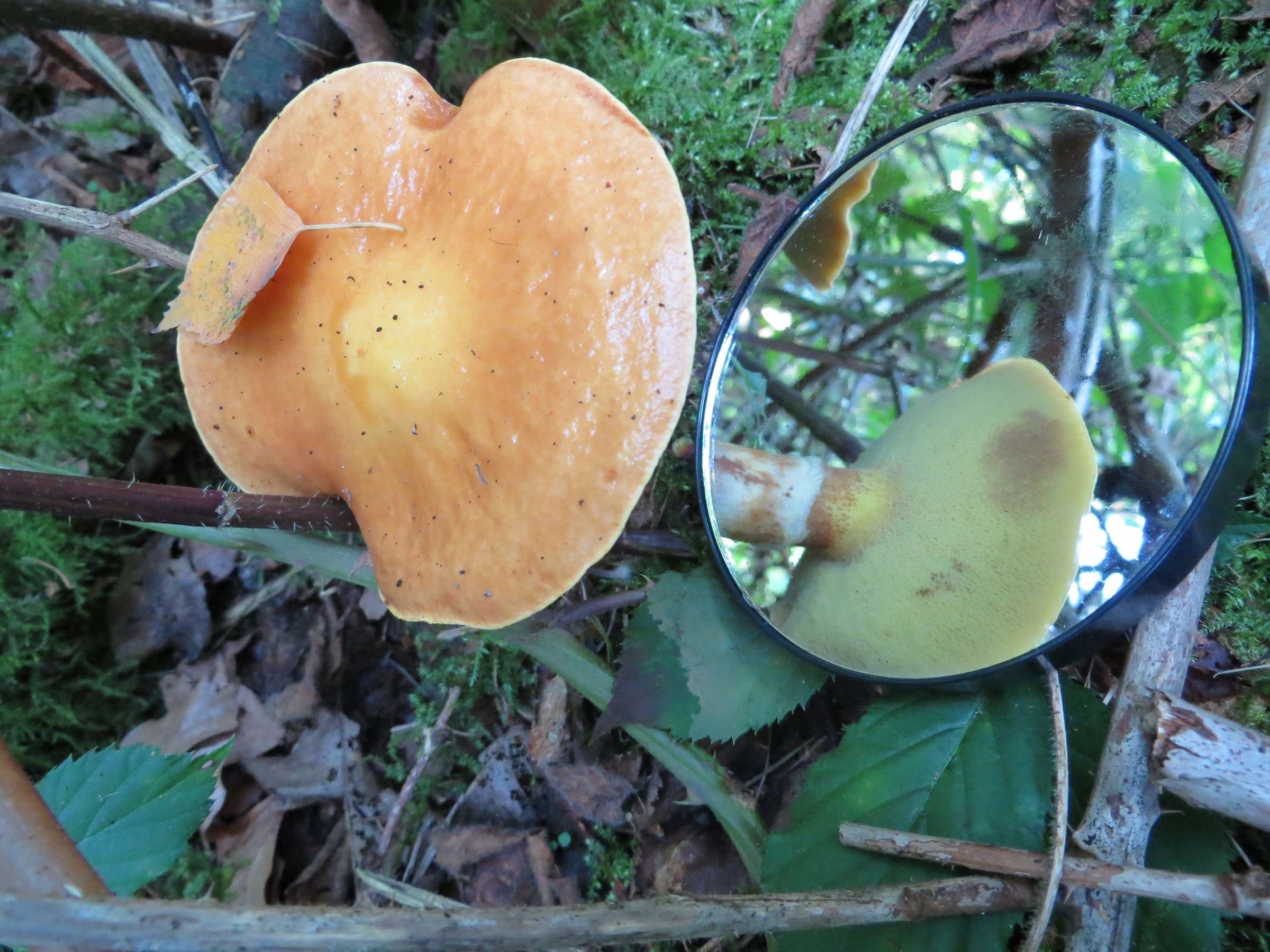 Stond hij bij Larixen , zo ja dan waarschijnlijk met buisjes en zou het de gele ringboleet kunnen zijn.