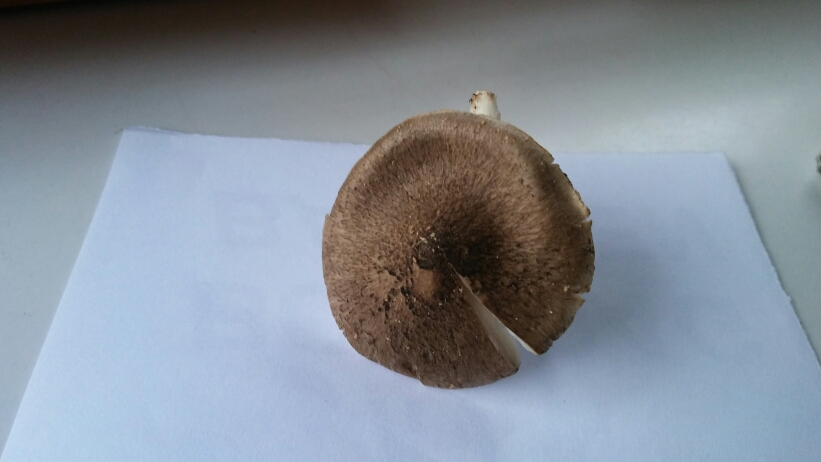 De foto is genomen met mijn mobiel. De paddo's lijken daarop inderdaad op parasolzwam en, maar er is geen ring. Ik heb er een mee naar huis genomen en daarvan de hoed op de foto gezet, van de steel is niets meer over, helemaal gespleten.
