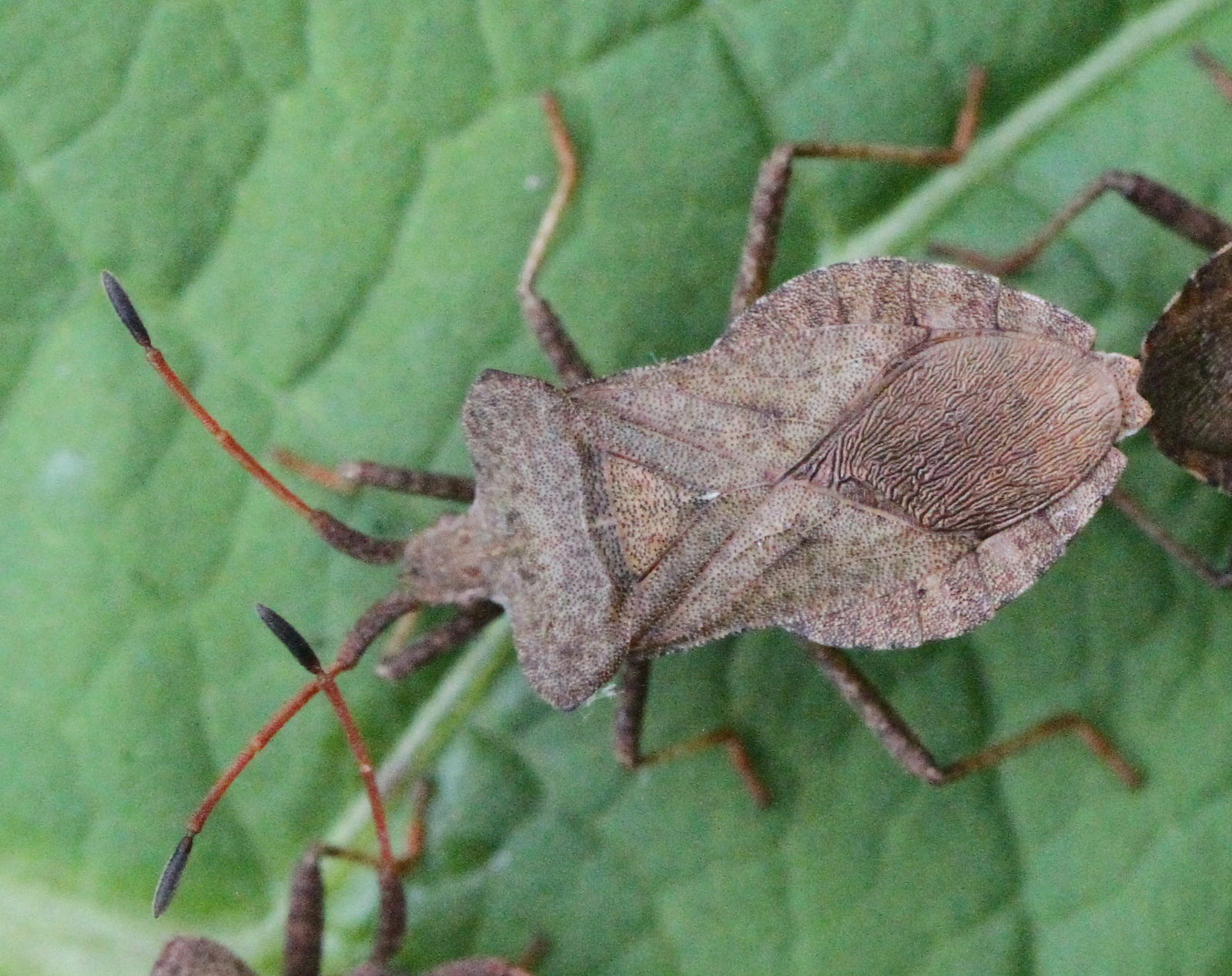 Die vier bruine zijn Zuringrandwantsen - Coreus marginatus, en rechts onderaan heb je nog een Zuidelijke schildwants - Peribalus strictus, Henk.
