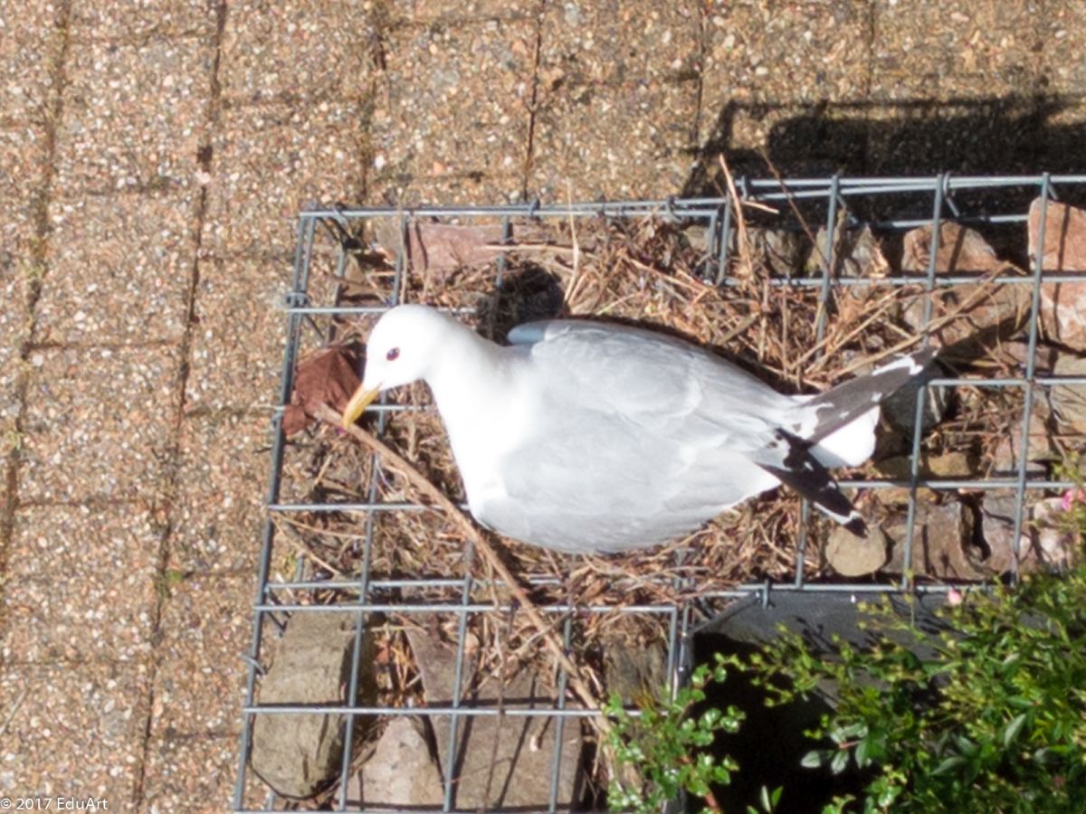 Deze meeuw zit bij ons voor het kantoor op een bizarre plek te broeden: op de stoep in een bloembak :-)