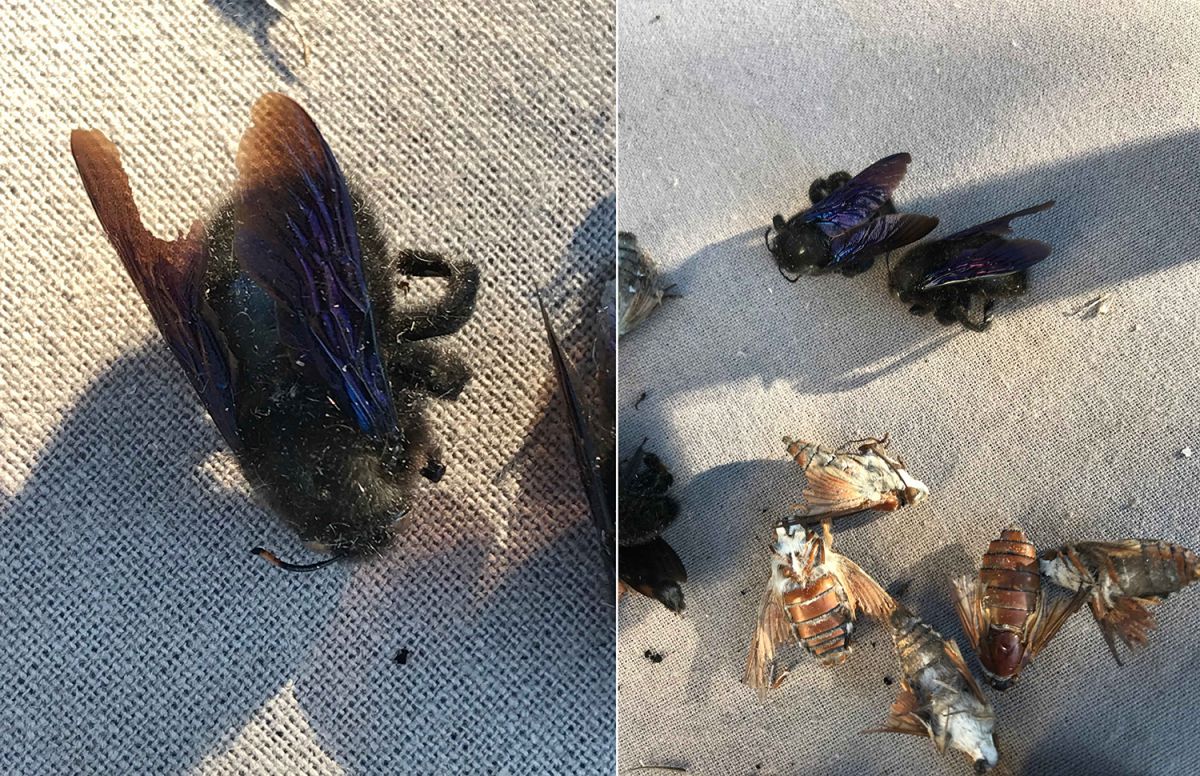Voor de andere dacht ik even aan Zangcicades, maar bij nadere beschouwing zullen het zeer zwaar "afgevlogen"/beschadigde nachtvlinders zijn (kapot gegaan door het gefladder in de lamp)