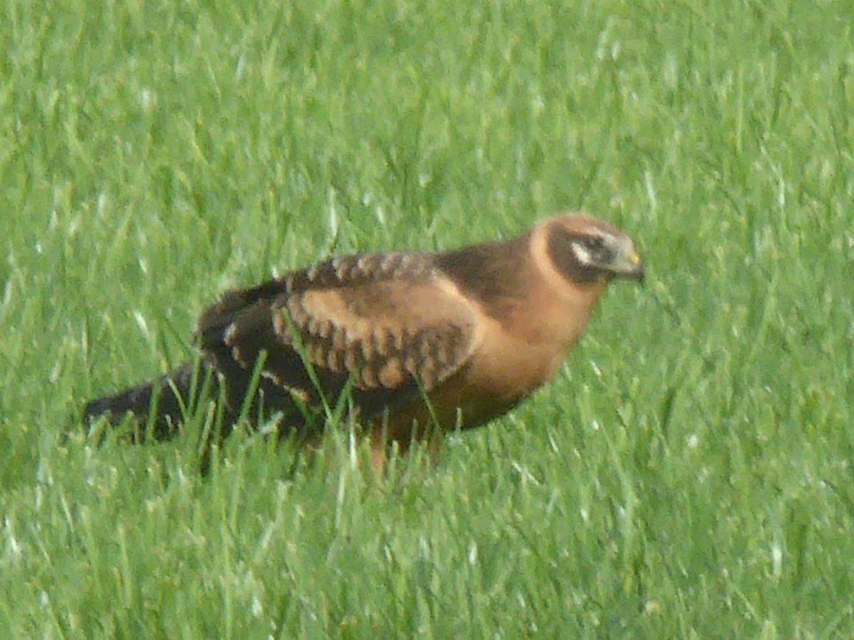 Volgens mij een eerste jaars grauwe kiekendief, vooral te zien aan de contrasterende wang.