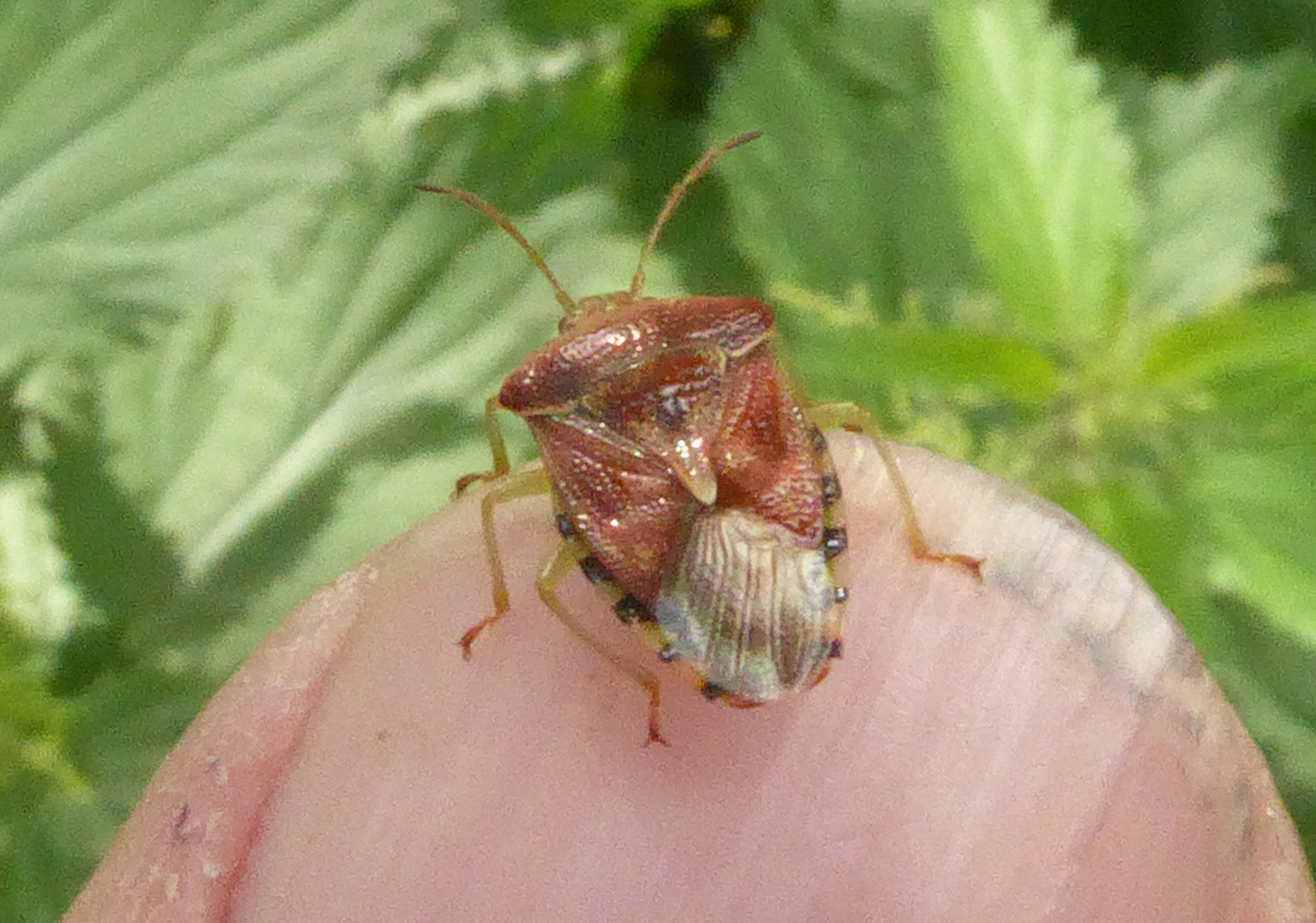 Hier kun je zien wat wordt bedoeld met dat doorntje, vlak boven de ogen.... Zo leer je langzamerhand dat je altijd moet proberen verschillende detail foto's te maken..... Bij wantsen altijd goed naar halsschild, antennes en poten kijken, eigenlijk letten op alles. Dat maakt het ook knap ingewikkeld.....maar gelukkig zijn er specialisten op dit gebied en mensen die er (heel)veel van afweten, en Arp blaast daarin zijn partij behoorlijk mee. Dus even op zijn reactie wachten.