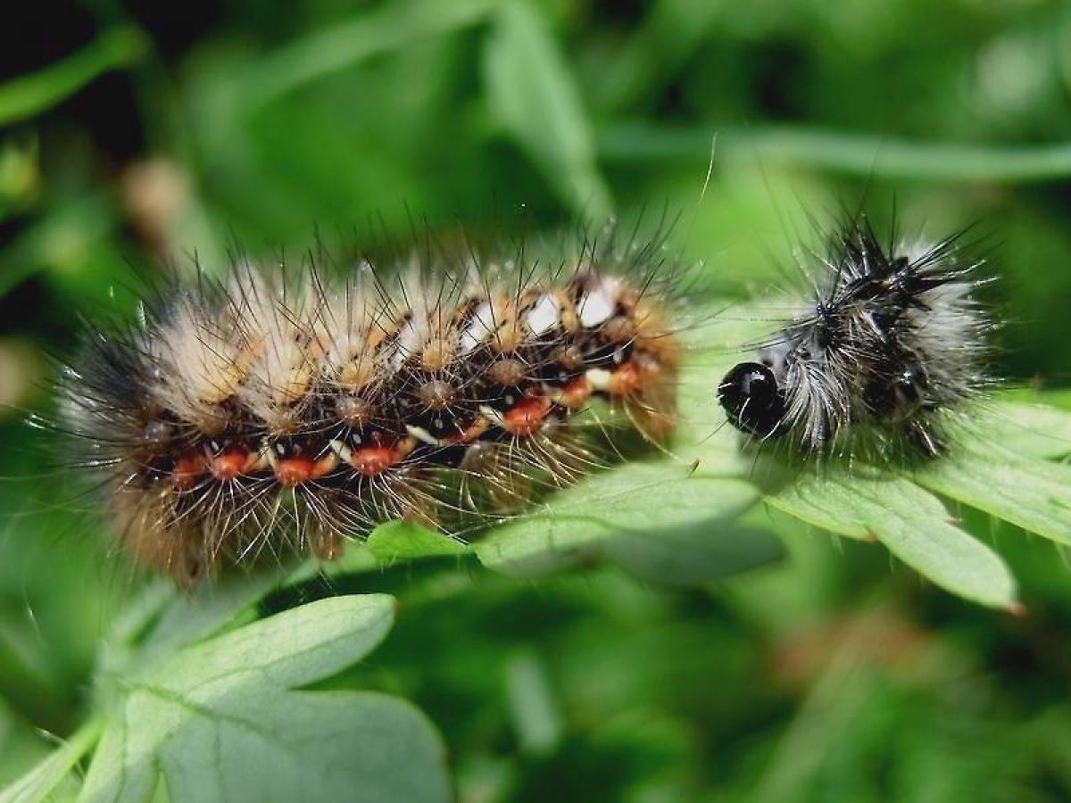 Hierbij de foto, rups zuringuil met vervellingshuidje.