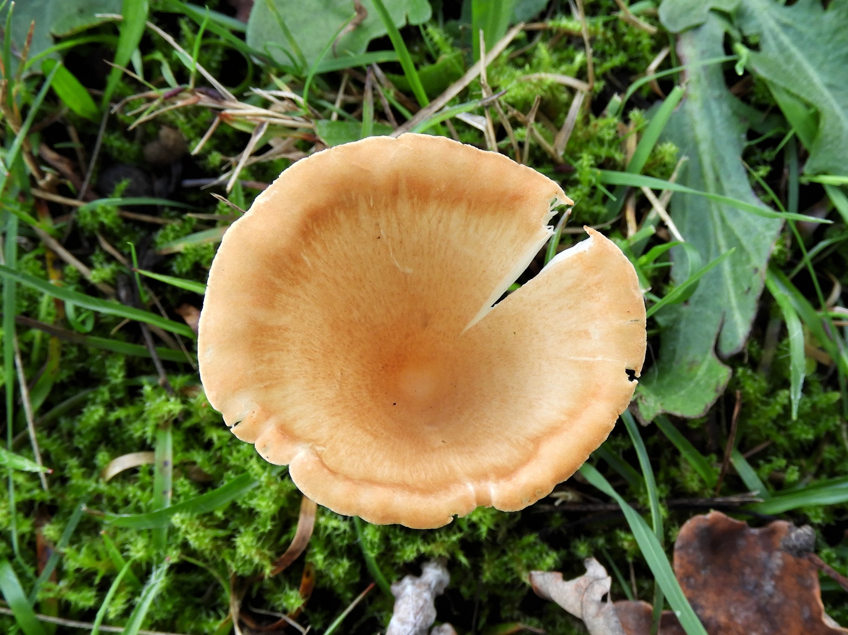 Ja, ik zal nu een foto van boven in de kelk meesturen. Er staan eiken en de paddenstoel zelf stond in het gras met de planten die zichtbaar zijn op de foto. . Ik heb een boek met paddenstoelen doorgebladerd maar kon niet iets vinden wat er op lijkt.