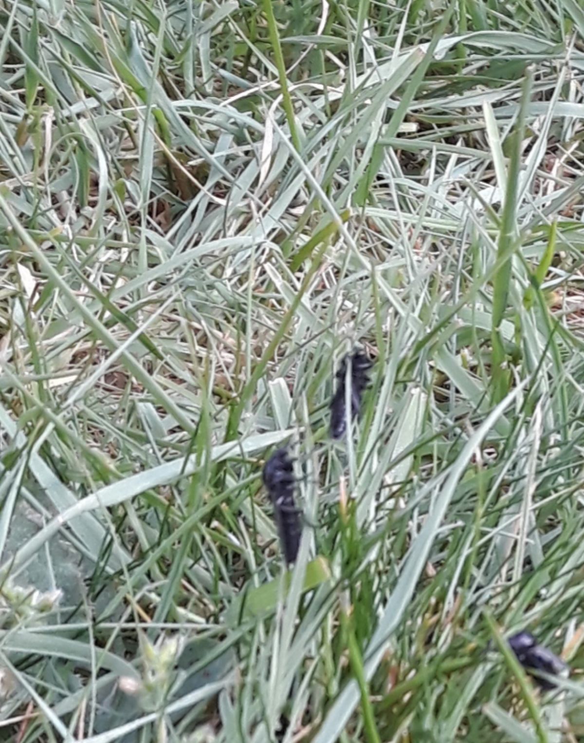 Iemand een idee wat deze geheel zwarte gevleugelde vrienden zijn? Er zaten er vanochtend een stuk of 10 bij elkaar in het gazon, onder een taxus.